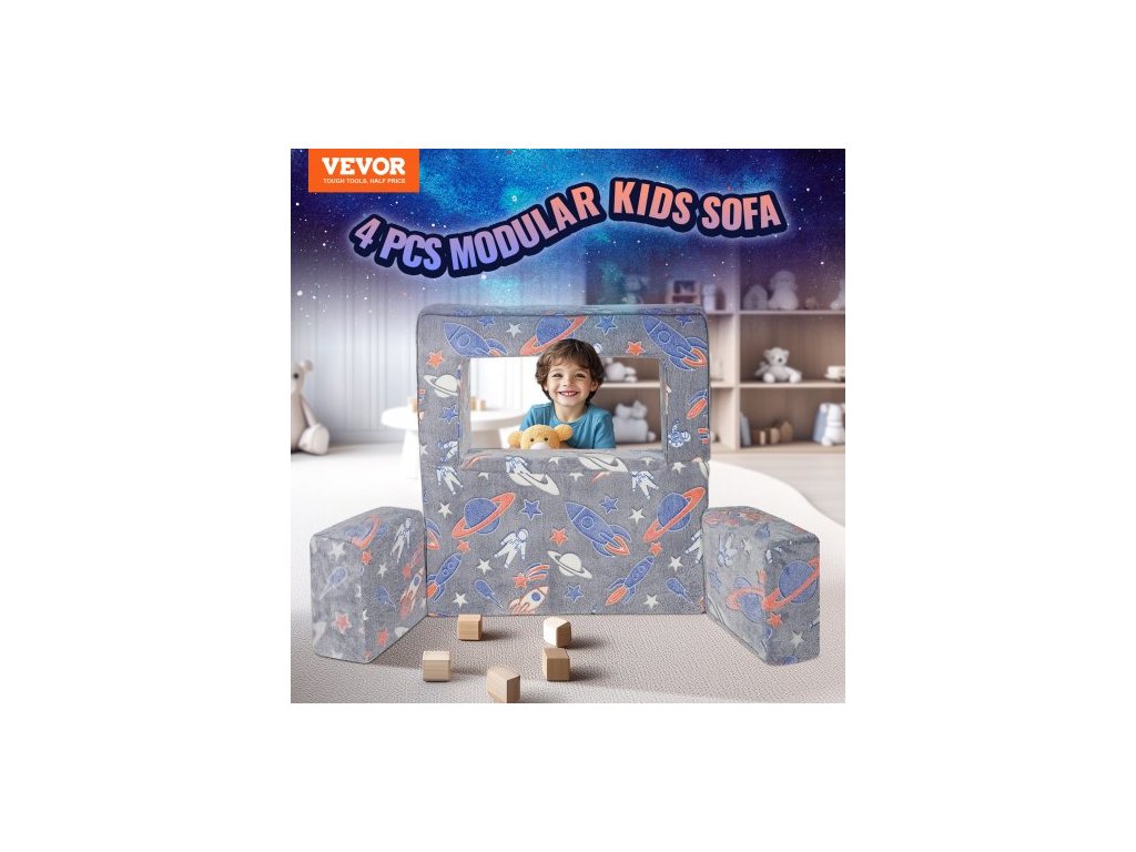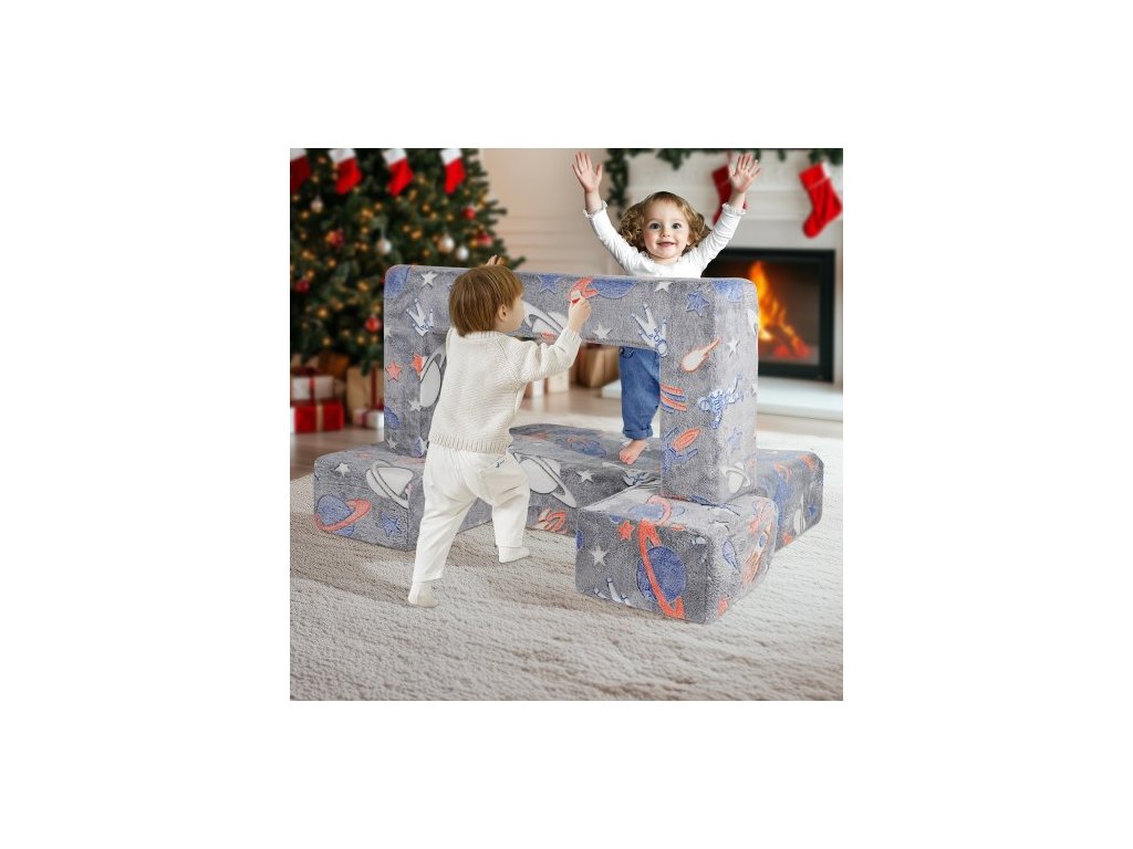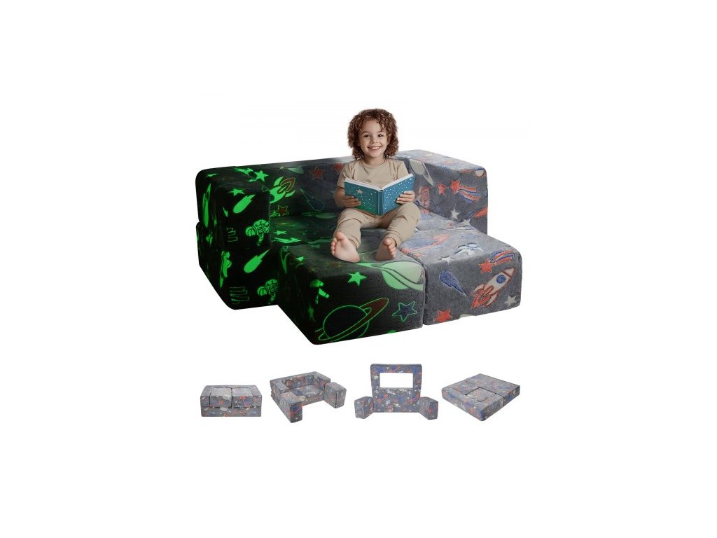Dětská pohovka , 4dílná rozkládací pohovka pro batolata, dětské křeslo, dětský nábytek do herny, dětská sekční pohovka s odnímatelným potahem pro dívky a chlapce, tmavě šedáPrémiová hrací pohovka