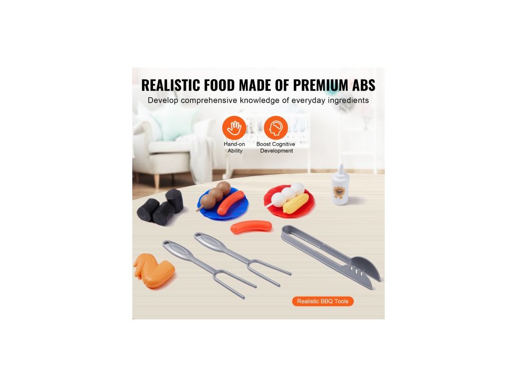 Dětská sada hraček na grilování s hračkou, zvukovým světlem a hračkou na hraní s jídlem a kuchyňskými doplňky, interaktivní sada na grilování pro batolata, kempování, vaření, grilování pro 2, 3, 4, 5 a 6 let, dárek k narozeninám pro dívky a chlapceRealistická zábava s grilováním