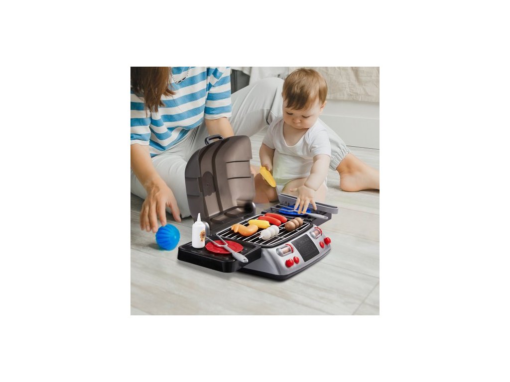 dětská sada hraček na grilování s hračkou, zvukem, světlem, hraním s jídlem a kuchyňskými doplňky, interaktivní sada na grilování pro batolata, kempování, vaření, grilování pro 2, 3, 4, 5 a 6 let, dívky a chlapce, dárek k narozeninám