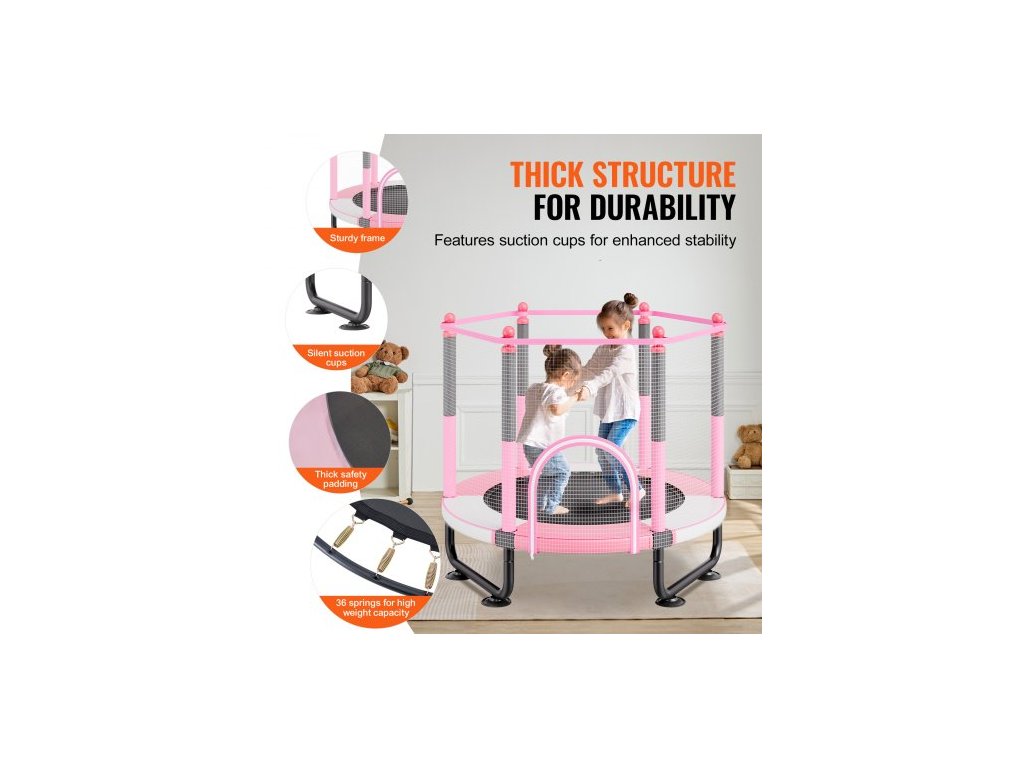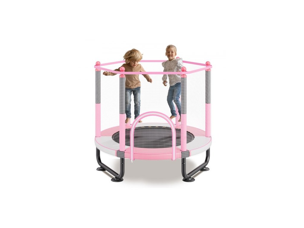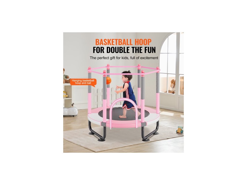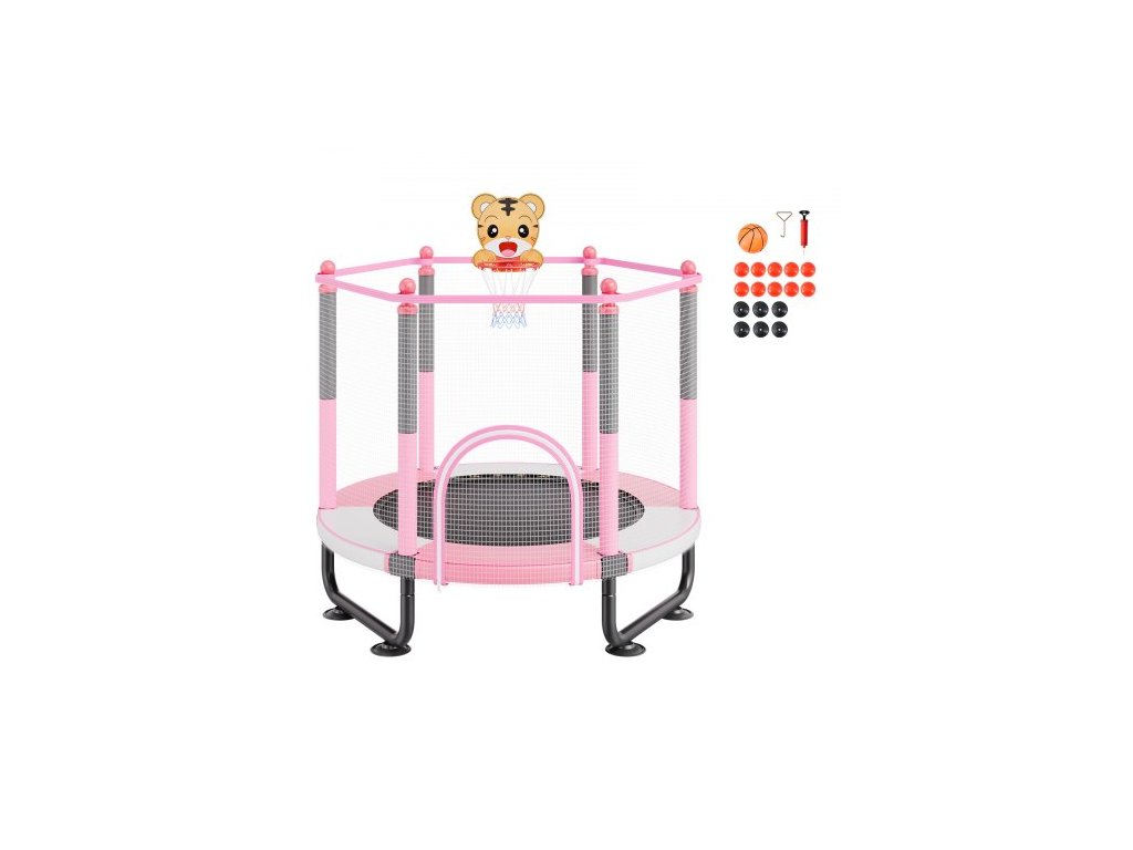 Dětská trampolína 60", 1,5 m vnitřní a venkovní trampolína, mini rekreační trampolína pro batolata s bezpečnostní sítí a basketbalovým košem, narozeninové dárky, vánoční hračky pro děti od 3 let, růžováVětší a širší dětská trampolína