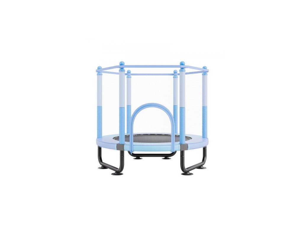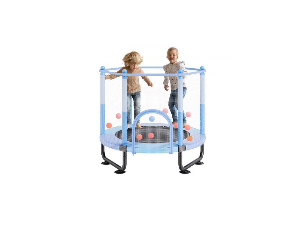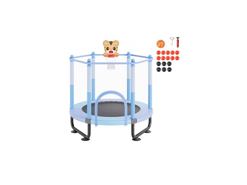 Dětská trampolína 60", 1,5 m vnitřní a venkovní trampolína, mini rekreační trampolína pro batolata s bezpečnostní sítí a basketbalovým košem, narozeninové dárky, vánoční hračky pro děti od 3 let, modráVětší a širší dětská trampolína