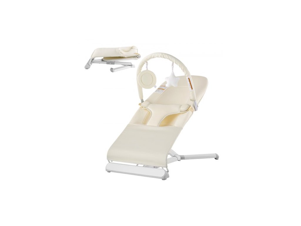 Dětské houpací křeslo, skládací houpací křeslo pro miminka 0-9 měsíců, novorozenecké houpací křeslo se 2 úhly sklonu a otočnou hrazdou na hračky, přenosné dětské houpací křeslo s taškou pro použití uvnitř i venku, béžové