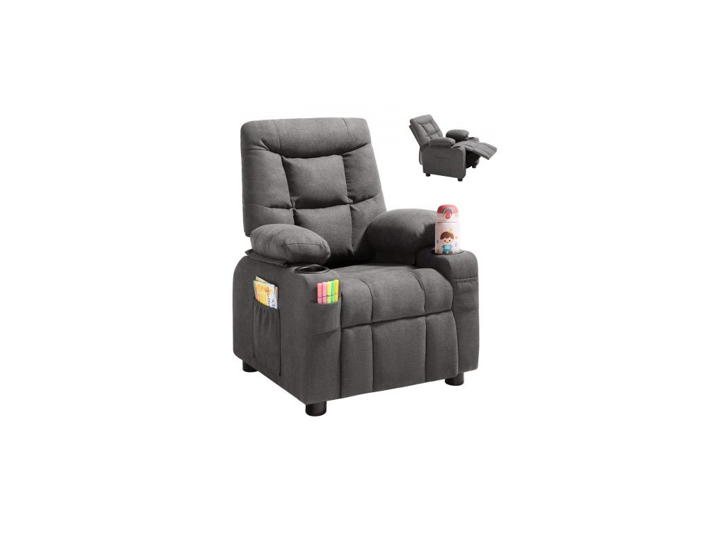 Dětské polohovací křeslo , polohovací křeslo pro batolata s držáky na nápoje a kapsami, nastavitelné opěradlo 107° až 126°, prodyšná polyesterová tkanina, polohovací gauč s opěrkou nohou, pro chlapce a dívky, pro děti (šedá)Dětské polohovací křeslo