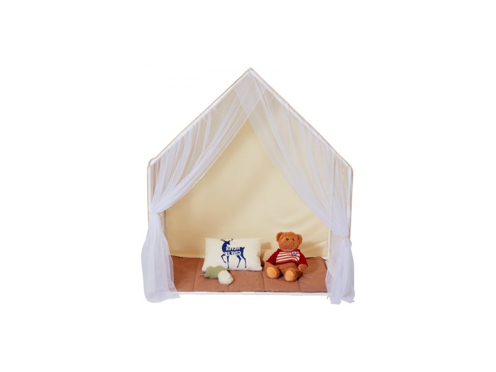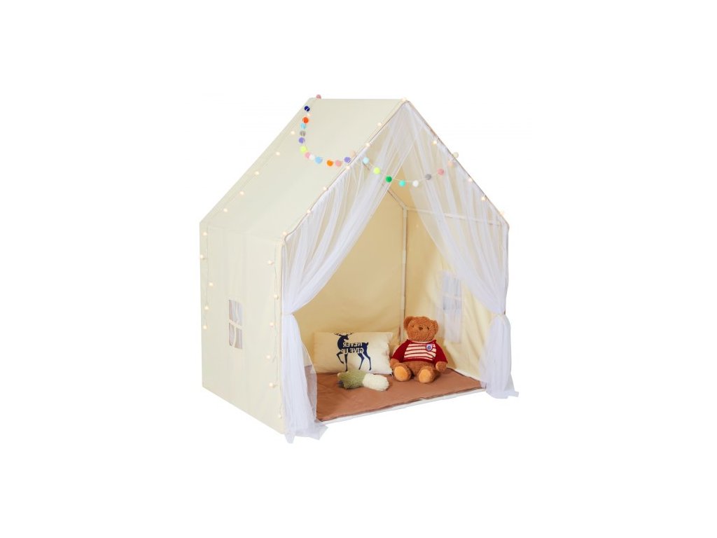 Dětský hrací stan , dětský stan pro děti 1-5 let, batolecí stan s podložkou a stanovou lampou, stan pro děti s okny pro vnitřní i venkovní použití, jurtový stan pro chlapce a dívky, béžovýPohodlný hrací prostor