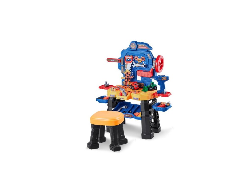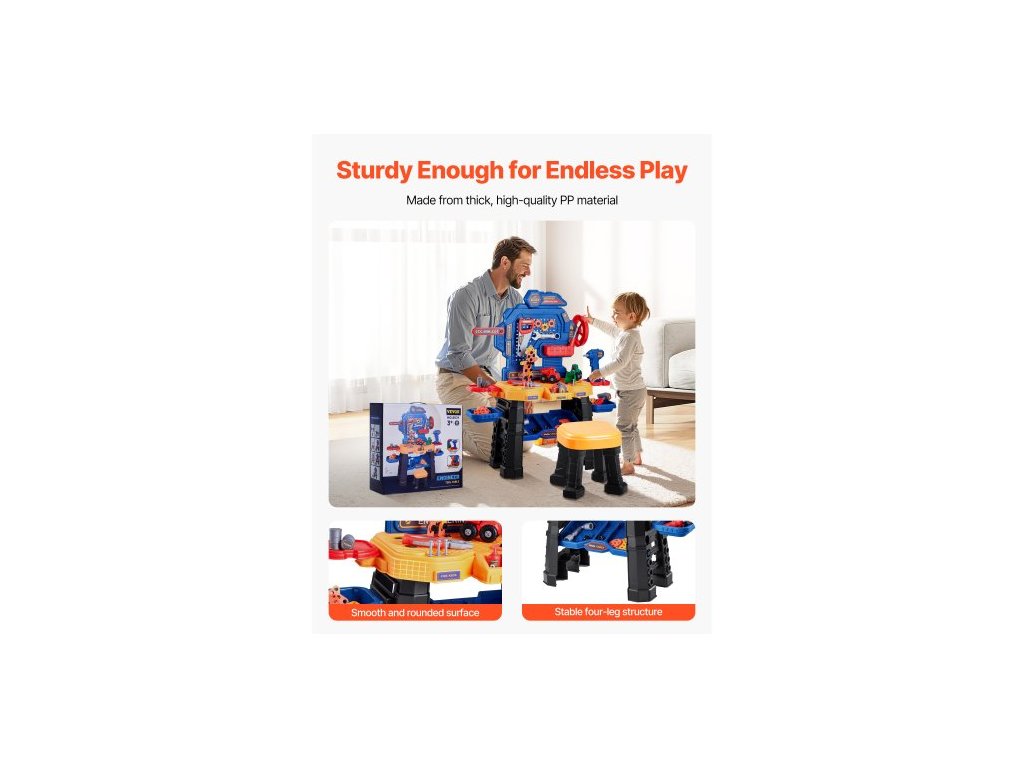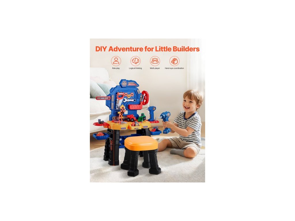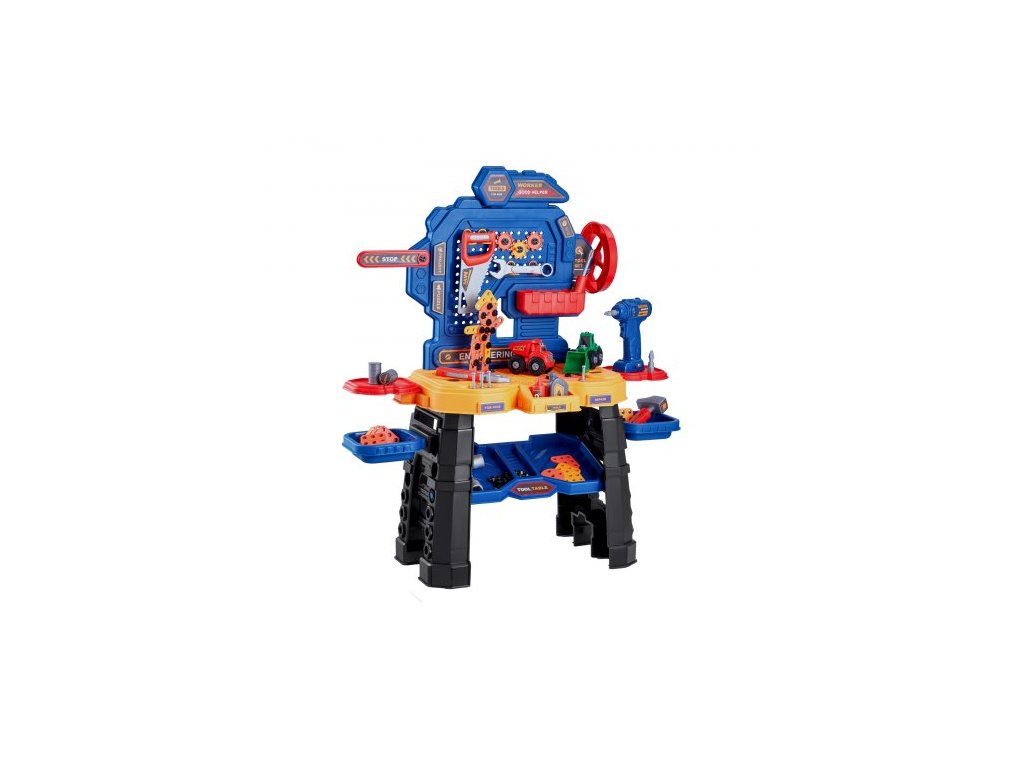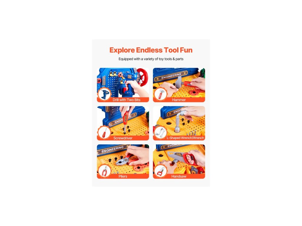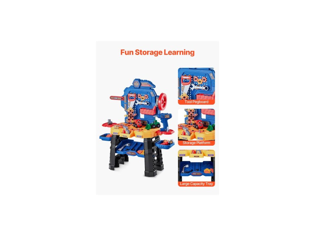 Dětský pracovní stůl, 181 dílů, Dětský nářadí s realistickým nářadím a elektrickou vrtačkou, Stavební pracovní stůl na hraní pro batolata, Vzdělávací dárek pro batolata - pracovní stůl pro chlapce a dívky od 3 let