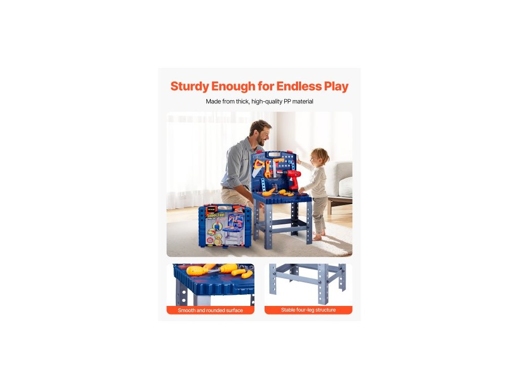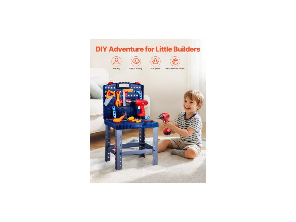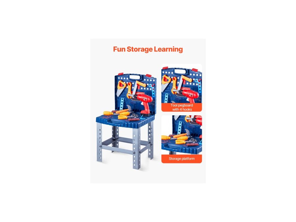Dětský pracovní stůl, 56 dílů, Dětský nářadí s realistickým nářadím a elektrickou vrtačkou, Stavební pracovní stůl na hraní pro batolata, Vzdělávací dárek pro batolata - pracovní stůl pro chlapce a dívky od 3 let