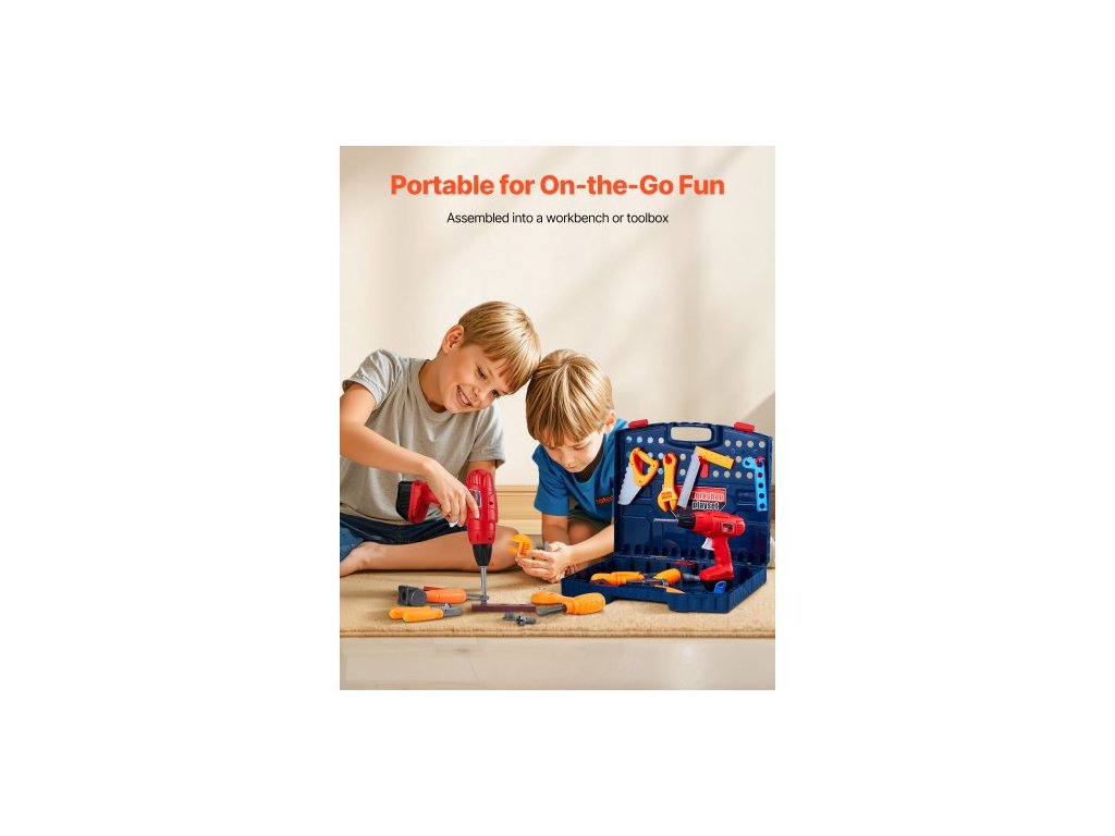 Dětský pracovní stůl, 56 dílů, Dětský nářadí s realistickým nářadím a elektrickou vrtačkou, Hračky na hraní - stavební pracovní stůl pro batolata, Vzdělávací dárek pro batolata pro chlapce a dívky od 3 letPřenosný zábavný pracovní stůl