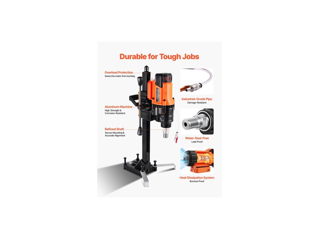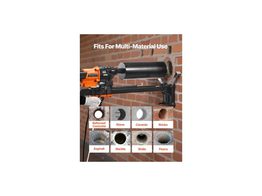Diamantová jádrová vrtačka , průměr vrtání 20–200 mm, stojanová vrtačka do betonu pro suché i mokré vrtání s 8 vrtáky, otáčky 850 ot./min, závit UNC1 1/4-7, pro beton, cihly, kámen, 3000 WBezpečnostní spojka
