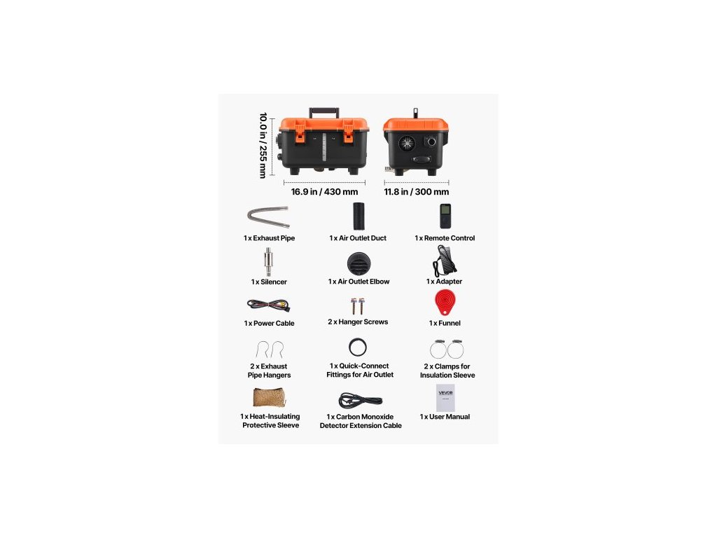 Spotřeba paliva: 0,04–0,1 gal/h (0,16–0,4 l/h),Provozní hlučnost: ≤75 dB,Rozsah nastavení teploty: 46,4–96,8 ℉ / 8–36 ℃ (10stupňová nastavitelnost),Číslo modelu položky: XMZ-TB30,Poměr vzduch-palivo: 2400–4400 ot/min, 2,0–6,1 Hz,Provozní Nadmořská výška: pod 3000 m, objem palivové nádrže: 4 l, ochrana proti přehřátí: ≥280 °C, průměr výstupu vzduchu: 75 mm, účinnost spalování: ≥90 %, rozměry výrobku: 430 x 300 x 255 mm, hmotnost bez přídavku: 7,8 kg (včetně veškerého příslušenství)