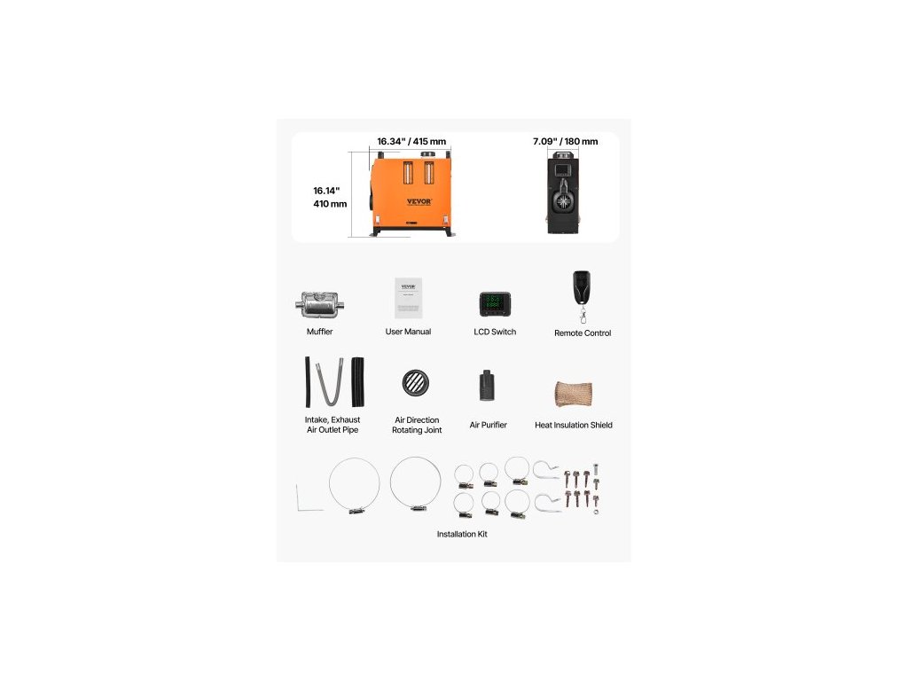 Dieselový ohřívač vzduchu, 8 kW DC12-24V, Rychle se ohřívající dieselový nezávislý ohřívač s dálkovým ovládáním a barevným digitálním displejem, nízká hlučnost, hlasové hlášení, pro obytné vozy, nákladní automobily, karavany, dodávky, lodě a přívěsyVšestranná kompatibilita