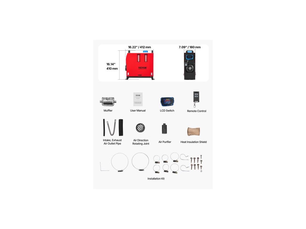 Spotřeba paliva: 0,18-0,36 l/h, Účinnost paliva: ≥90 %, Provozní hlučnost: ≤75dB, Provozní napětí: DC 12-24V, Číslo modelu položky: CY-30, Použitelná nadmořská výška: Pod 3000 m, Nastavitelný teplotní rozsah: 0-40 ℃ (1-6 nastavitelných úrovní), Čistá hmotnost: 8,30 kg kg (včetně veškerého příslušenství), rozměry výrobku: 16,22 x 7,09 x 16,14 palce / 412 x 180 x 410 mm