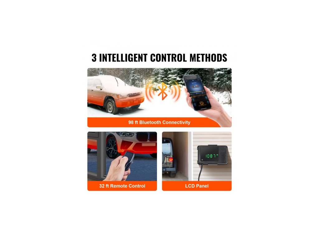 Naše vylepšené naftové ohřívač vzduchu má nyní pro větší pohodlí ovládání přes Bluetooth. Stáhněte si aplikaci pro předehřátí topení až do vzdálenosti 30 m nebo použijte dodaný dálkový ovladač a LCD displej s dosahem 10 m.
