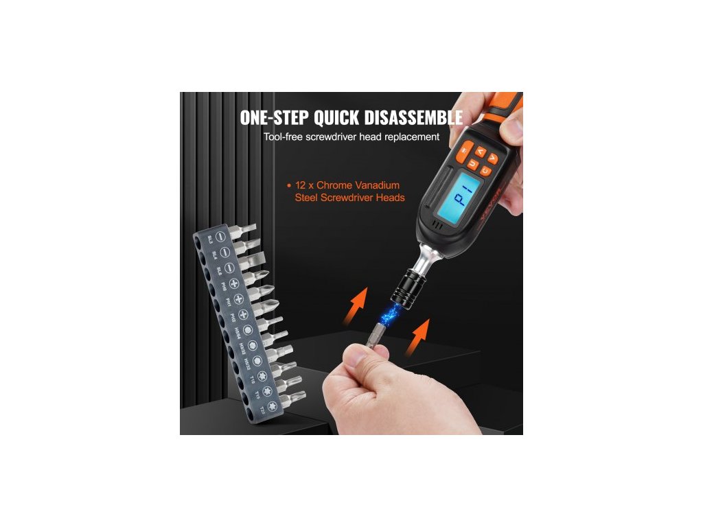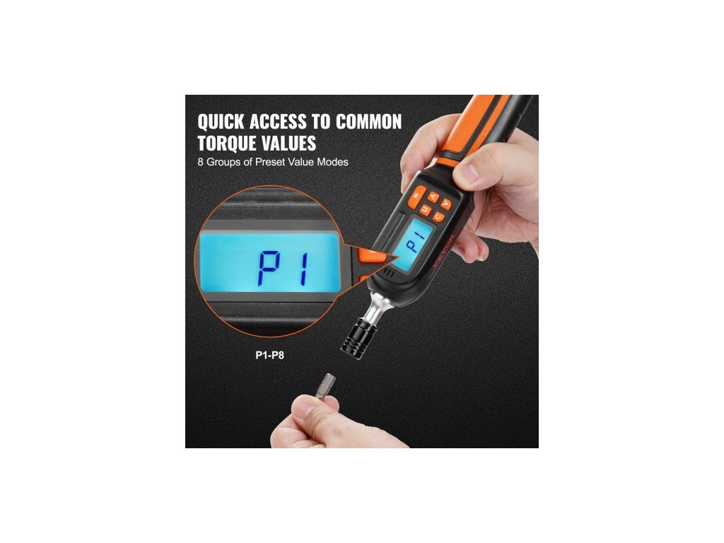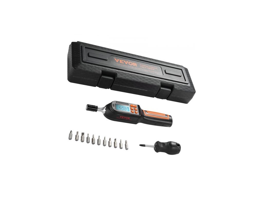 Digitální momentový šroubovák , momentový klíč s pohonem 0,64 cm, elektrikářský momentový šroubovák s LCD displejem, rozsah momentu 0,30–7,98 N·m, krok 0,01 N·m, momentový šroubovák s bity a pouzdremMomentový šroubovák s digitálním displejem