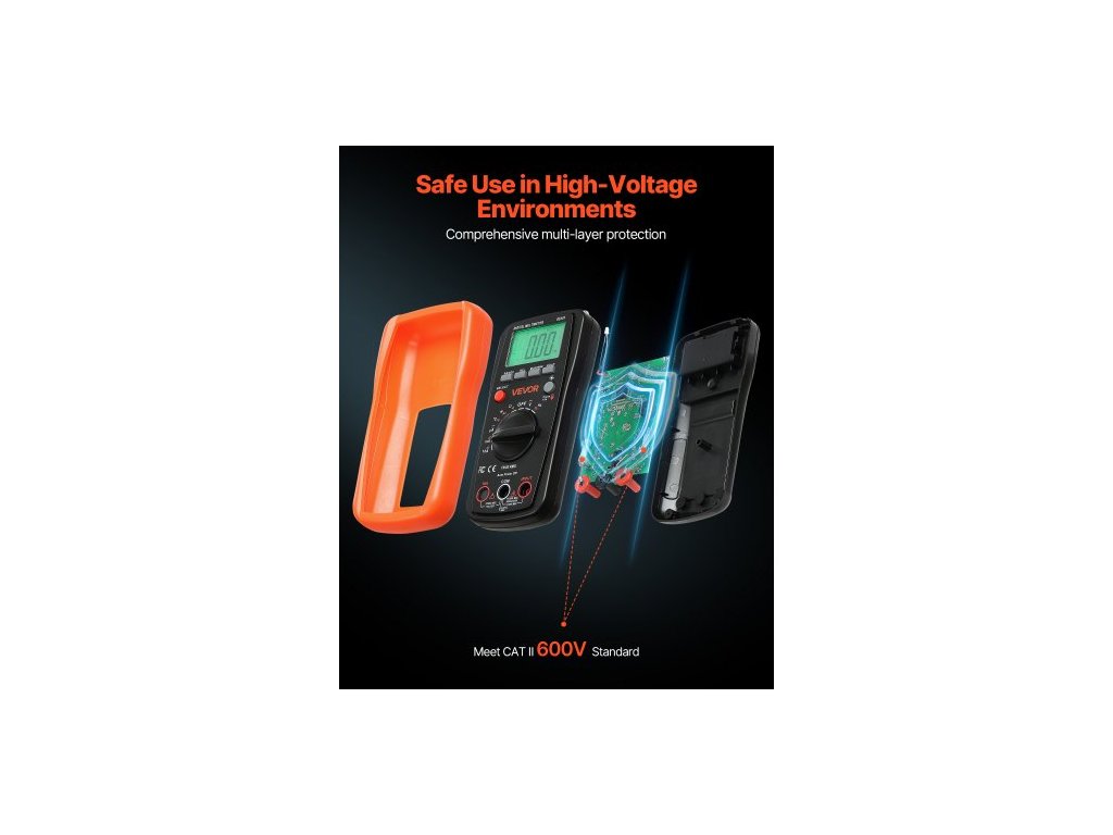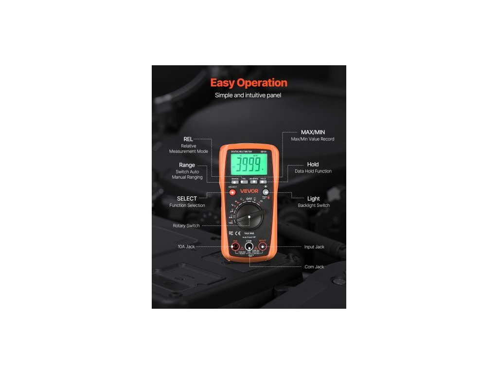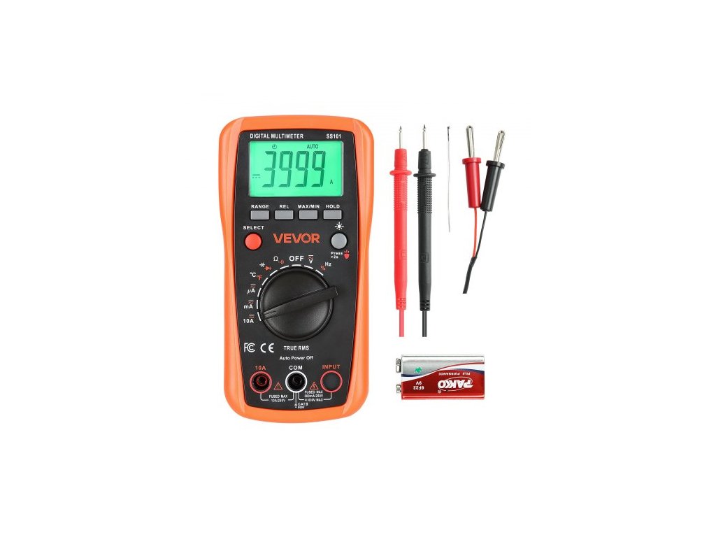 Digitální multimetr , 4000bodový TRMS DC/AC voltmetr, tester proudu, automatické přepínání rozsahu pro měření proudu, napětí, odporu, kapacity, teploty, diod, kontinuity, střídySnadnější použití