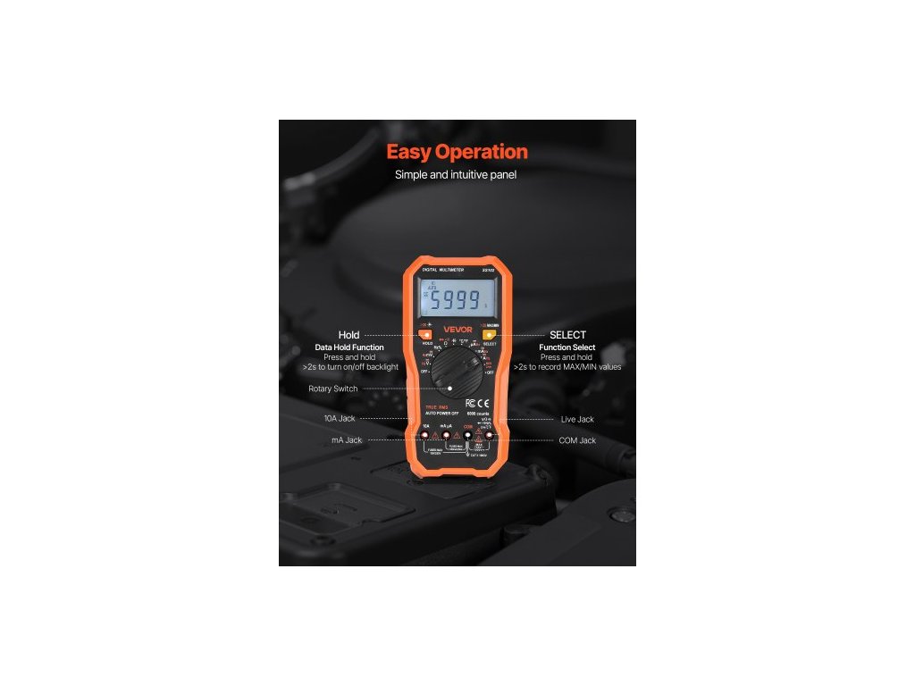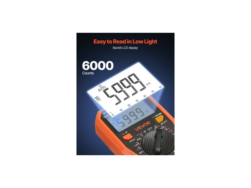Digitální multimetr , 6000bodový TRMS DC/AC voltmetr, tester proudu, profesionální NCV multimetr pro měření proudu, napětí, odporu, kapacity, pracovního cyklu, teploty, diod, kontinuity vodičů pod napětímSnadnější použití