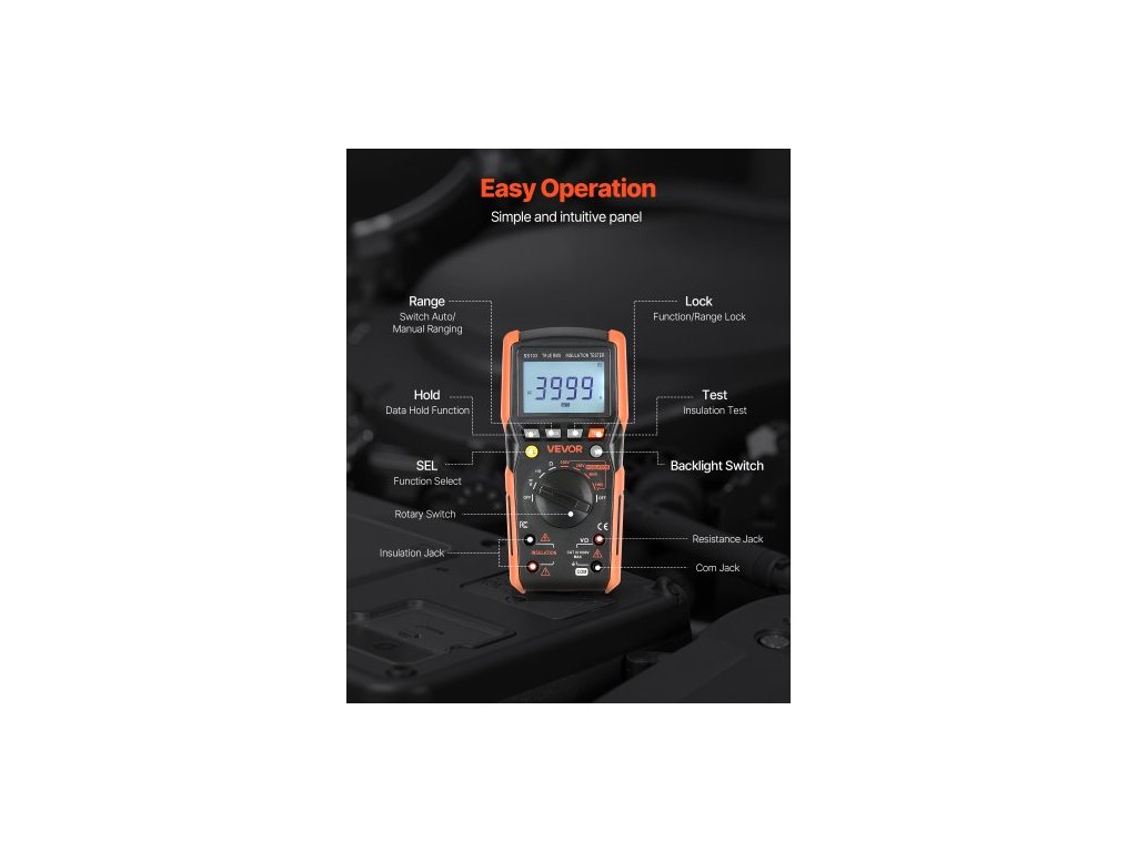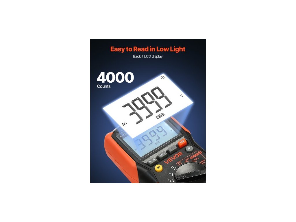 Digitální multimetr , voltmetr/ohmmetr s 4000 měřenými hodnotami TRMS, tester napětí 1000 V AC/DC s přepínatelným automatickým/manuálním rozsahem pro měření napětí, odporu a kontinuitySnadnější použití