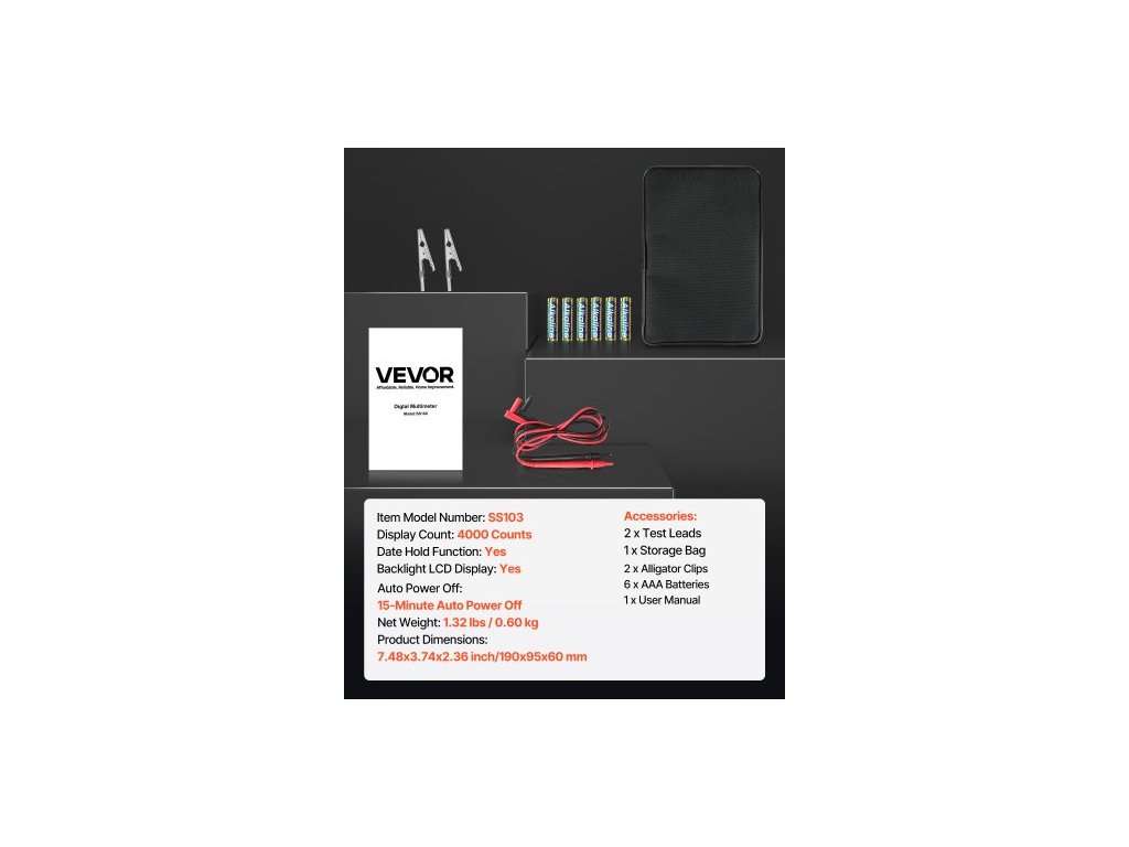 Automatické vypnutí: 15minutové automatické vypnutí, Funkce uchování data: Ano, Číslo modelu položky: SS103, Počet zobrazení: 4000 měřených hodnot, Rozměry produktu: 7,48 x 3,74 x 2,36 palce / 190 x 95 x 60 mm, Čistá hmotnost: 1,32 lbs / 0,60 kg, Podsvícený LCD displej: Ano