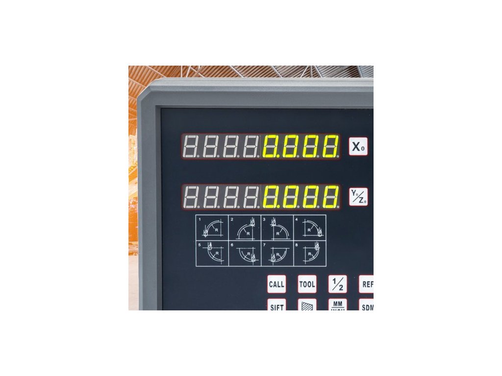 Digitální odečet ve 2 osách, displej DRO, délka pojezdu 1000 mm a 250 mm, přesné lineární měřítko, digitální odečet os
