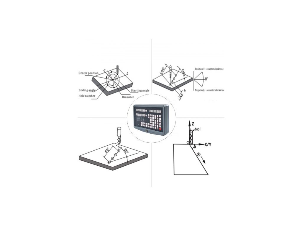 Vstupní signál: TTL obdélníkový EIA-442, Frekvence vstupního signálu: 100 kHz, Klávesnice: Citlivá na tlak, Životnost: Pět milionů opakování, Délka kabelu lineárního odečtu: 3 m/10 stop na kus, Osa: 2 osy, Displej: 8 číslic, Rozlišení: 5 μm/0,0002" při 20 °C