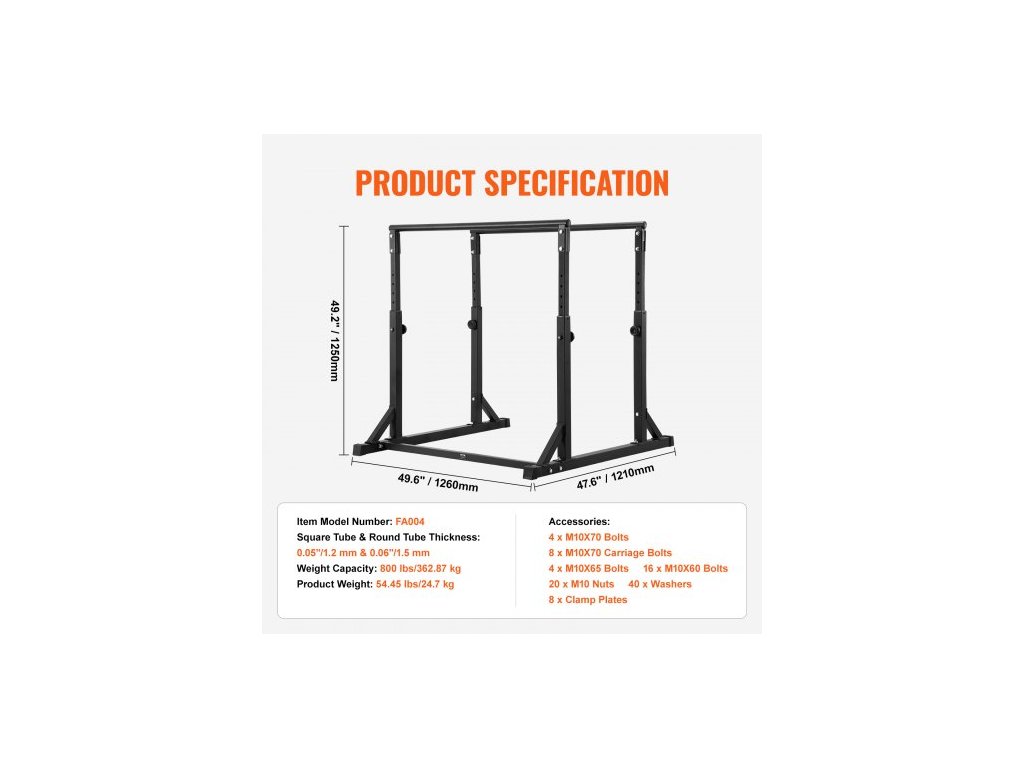 Nosnost: 363 kg, Číslo modelu položky: FA004, Hmotnost výrobku: 24,7 kg, Tloušťka čtvercové a kulaté trubky: 1,2 mm a 1,5 mm, Rozměry výrobku: 1260 x 1210 x 1250 mm