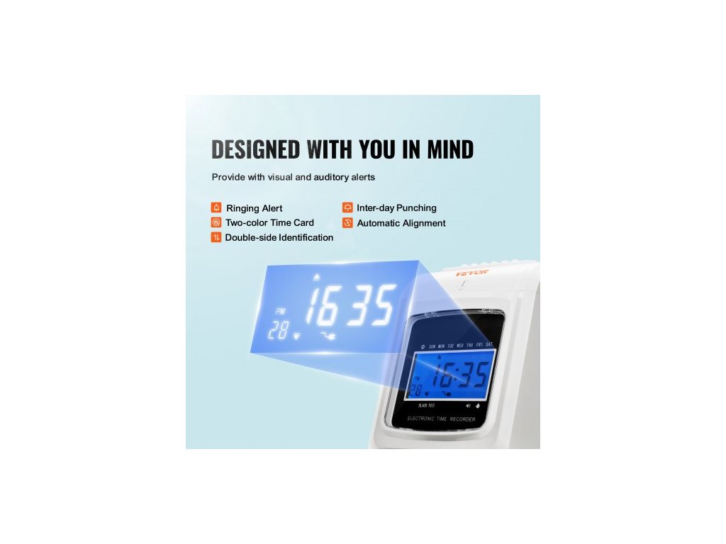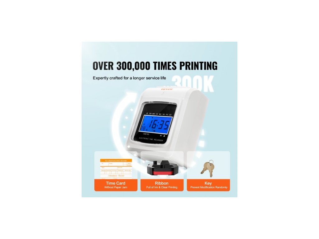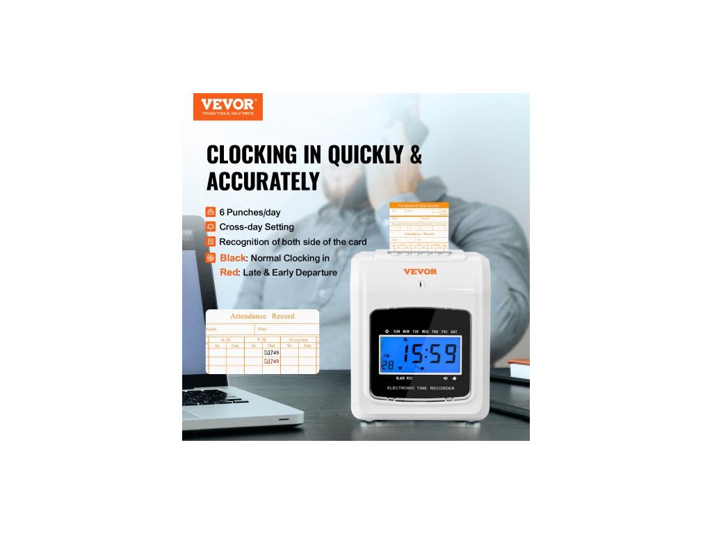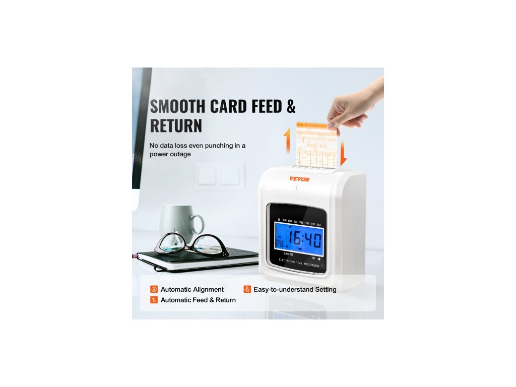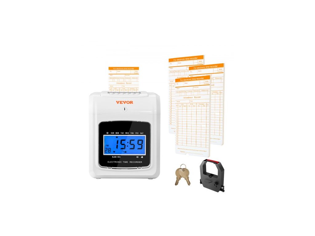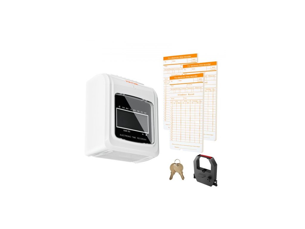Docházková karta , záznamník docházky se 102 kartonovými kartami, 1 páskou na odznaky, rozvrh příchodů a odchodů, 3 týmy, 6 děrování/den, automatické zarovnání pro evidenci docházky v kanceláři zaměstnanců6 děrování za den