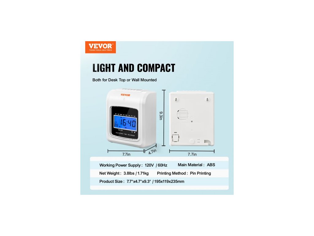 Výstup napájecího adaptéru: 12 V DC/2 A, Kabel: 70,7 palce/1,8 m, 22 AWG, Hlavní materiál: ABS, Okamžitý výkon: 8,9 W ± 20 %, Čistá hmotnost: 3,8 liber/1,71 kg, Číslo modelu položky: LY-258, Rozhraní napájecího adaptéru: DC 0,2 x 0,09 palce/5,5 x 2,2 mm, Způsob tisku: Stehový tisk, Napájení: 220 V, 50 Hz, Rozměry výrobku: 7,7 x 4,7 x 9,3 palce/195 x 119 x 235 mm, Obrazovka: 4,5 x 2,3 palce/2,1 palce (114 x 59/54 mm)