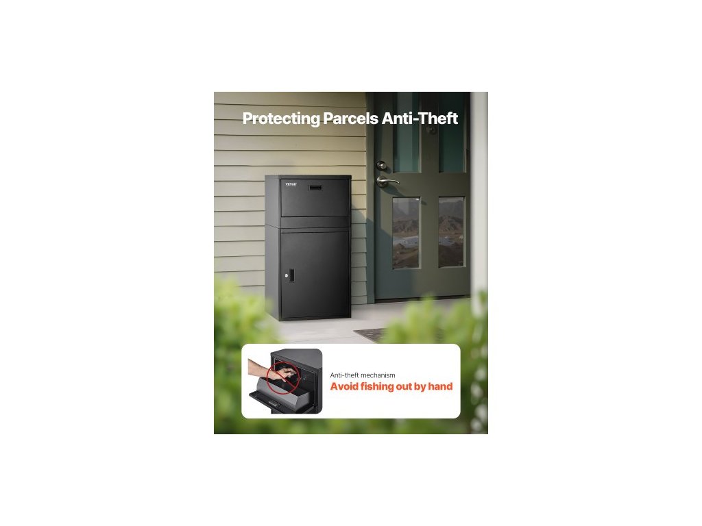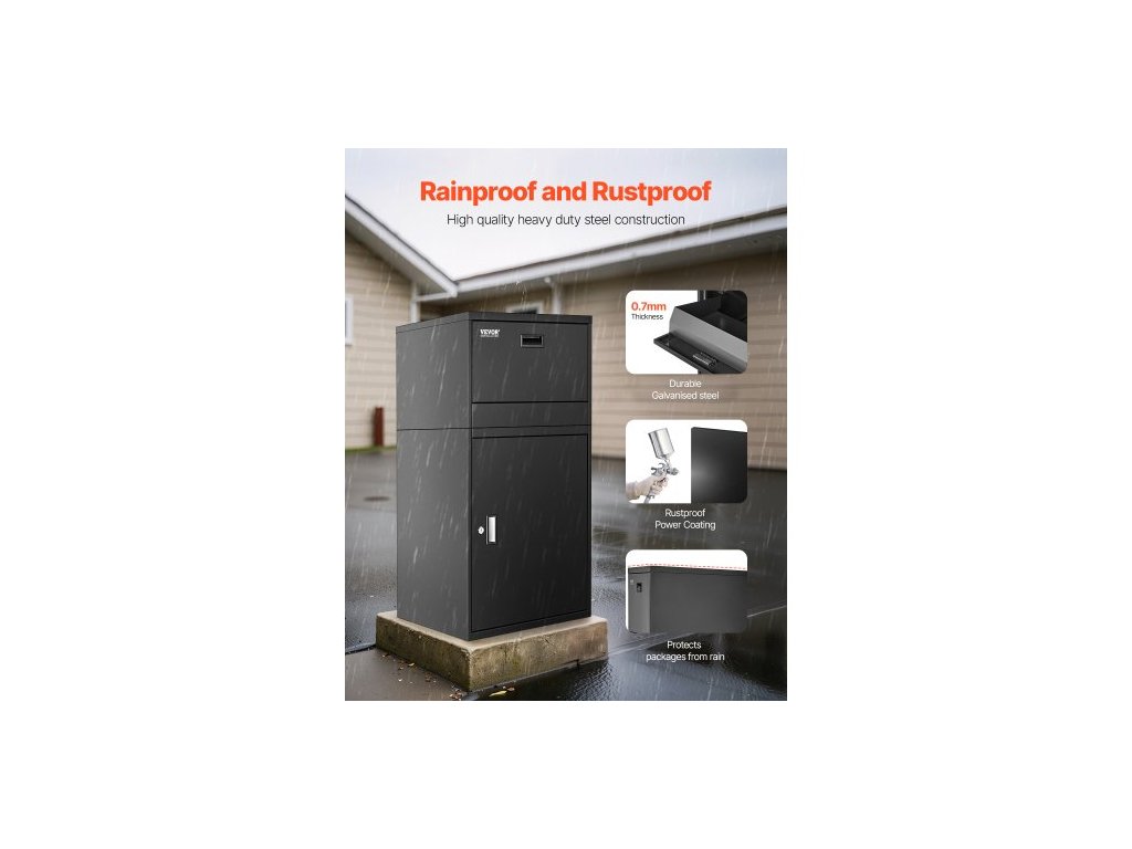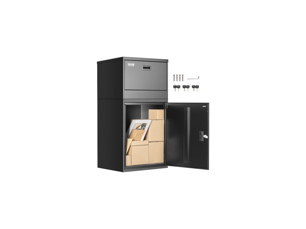 Doručovací krabice pro venkovní použití, poštovní schránka na balíky o průměru 91 cm se zámkem, pozinkovaná ocelová schránka na balíky s ochranou proti krádeži, odolná vůči povětrnostním vlivům a pro domácnost i kancelář, černá