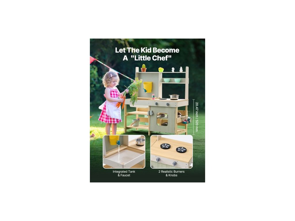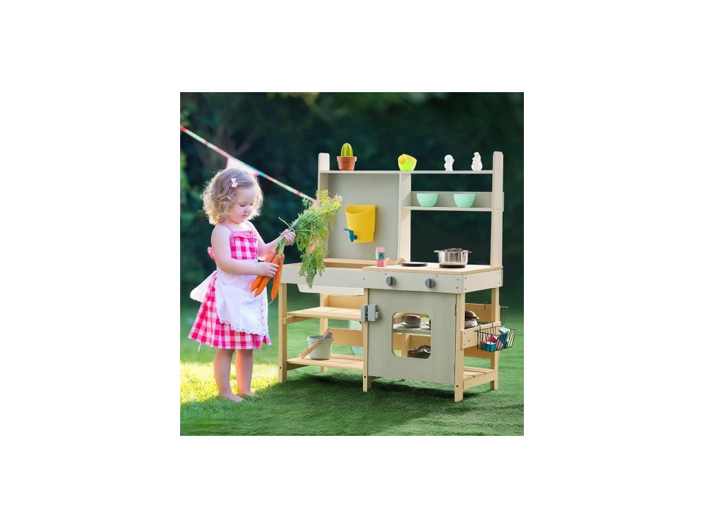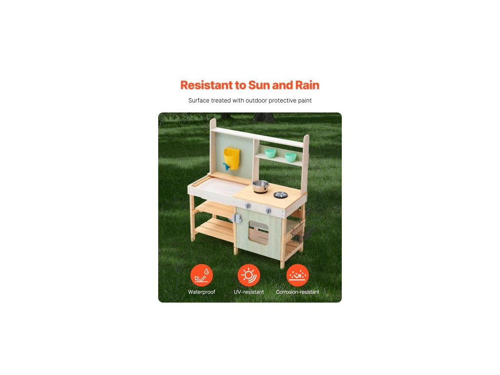 Dřevěná bahenní kuchyňka, venkovní hračka, kuchyňská sada pro děti, hračka na hraníBezpečný venkovní nátěr