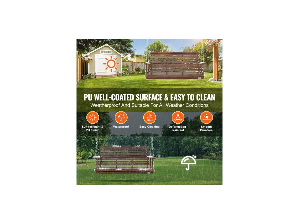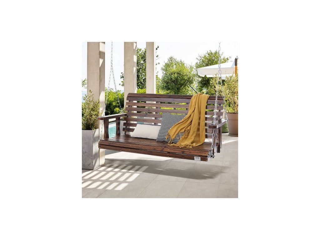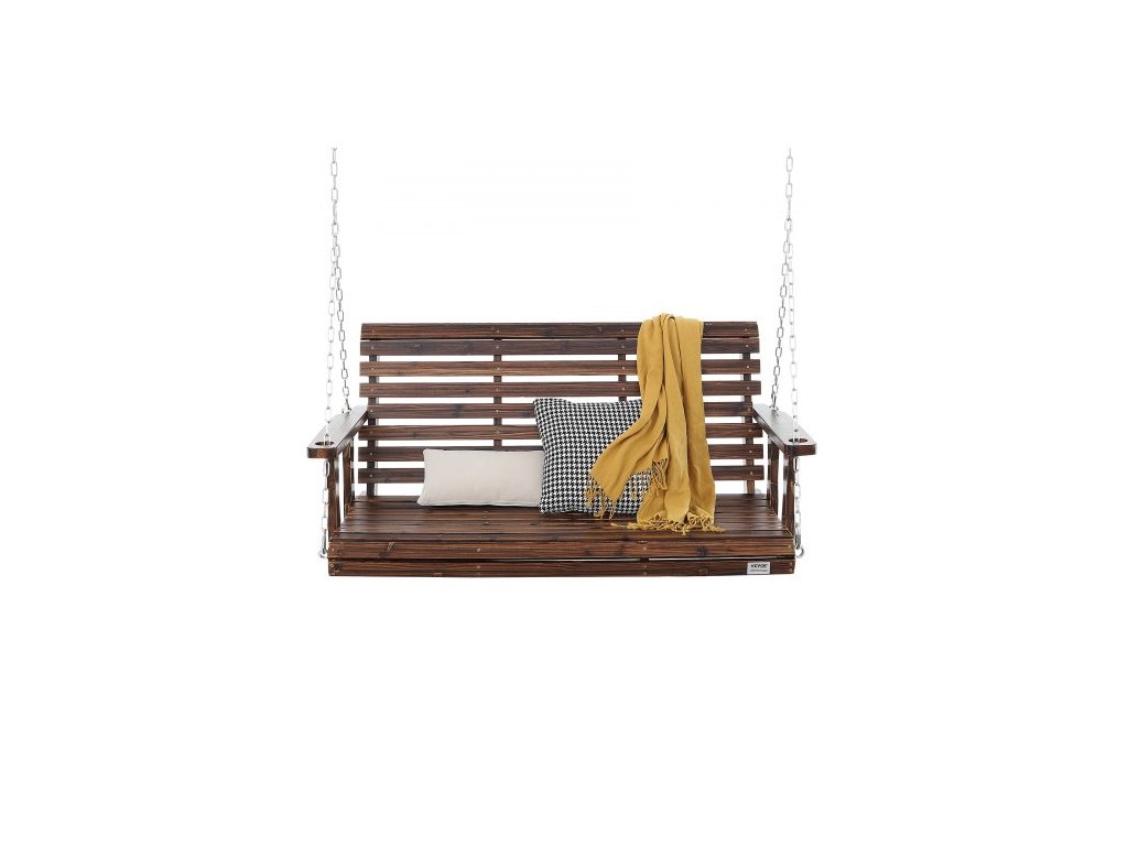 Dřevěná houpačka na verandu 1,3 m, zahradní houpačka na terasu do dvora a do zahrady, vylepšená nosnost 380 kg, odolná houpací lavice se závěsnými řetězy pro venkovní použití, karbonizovaná hnědá