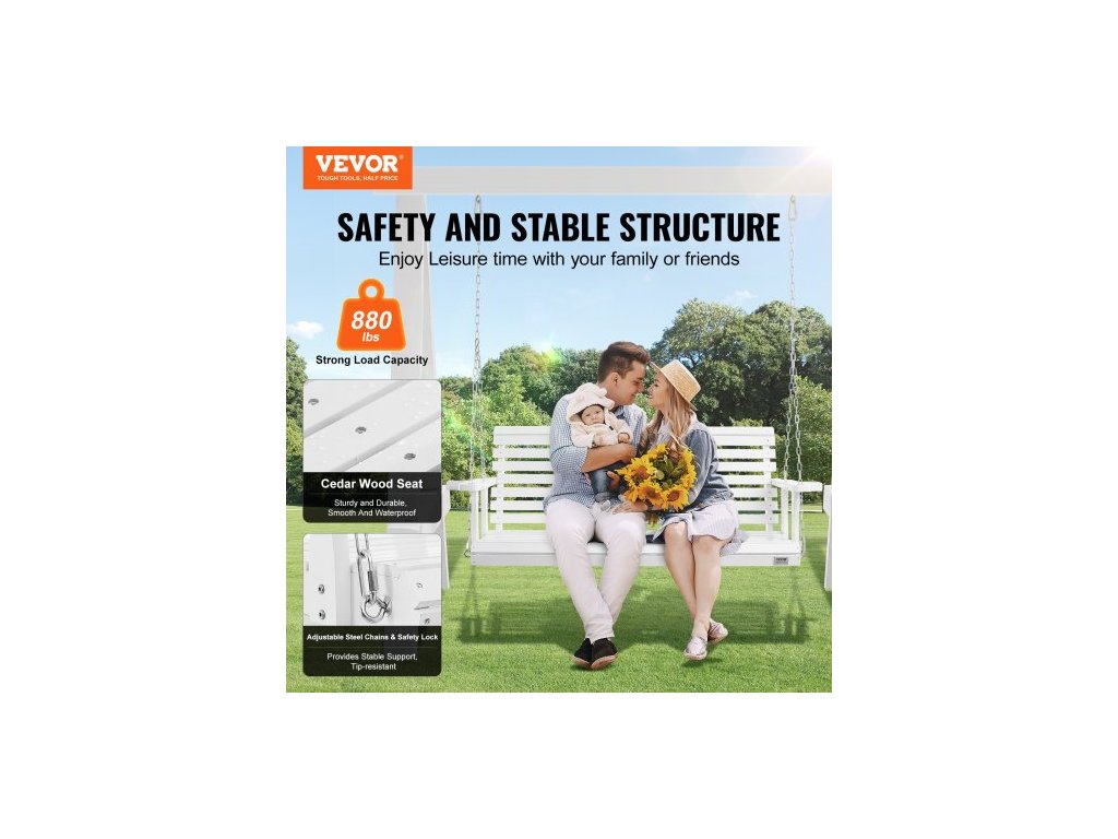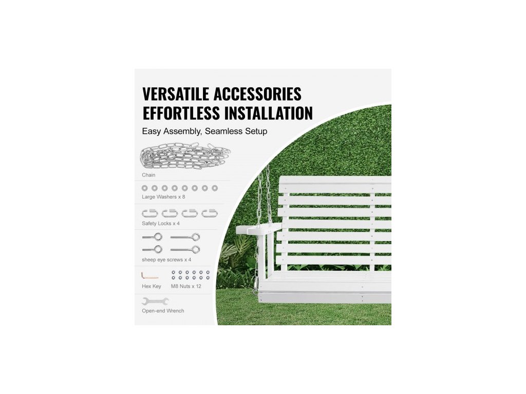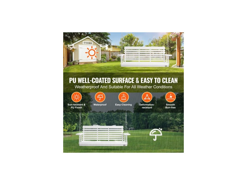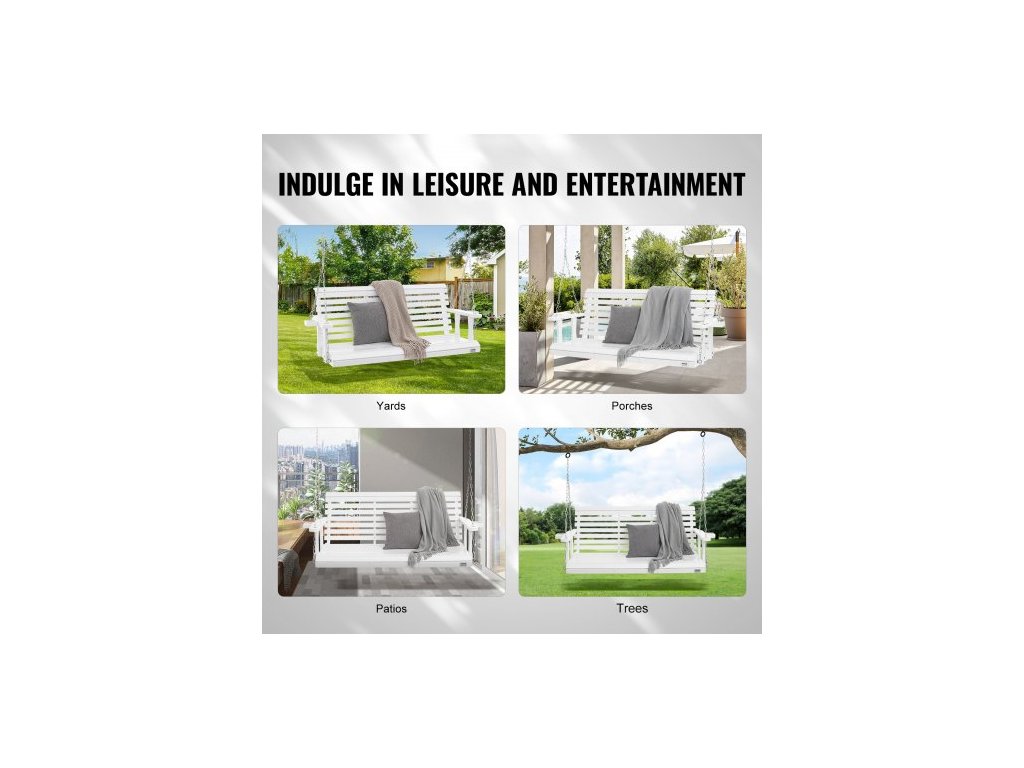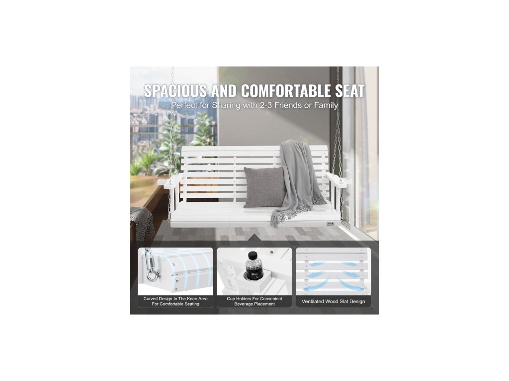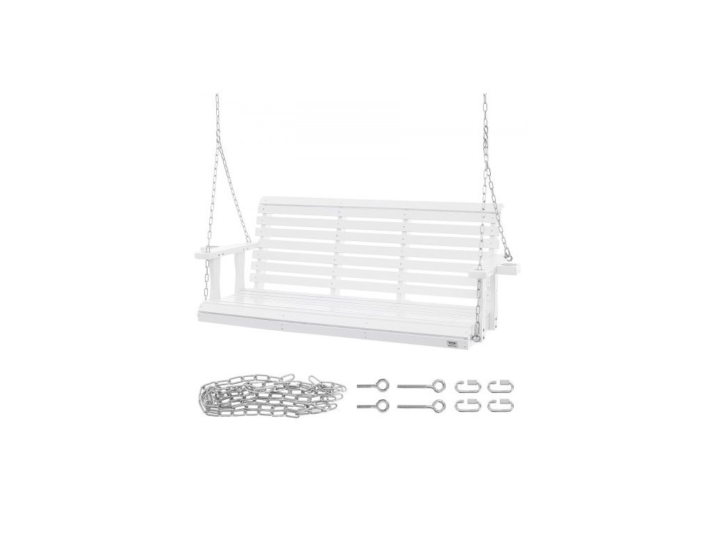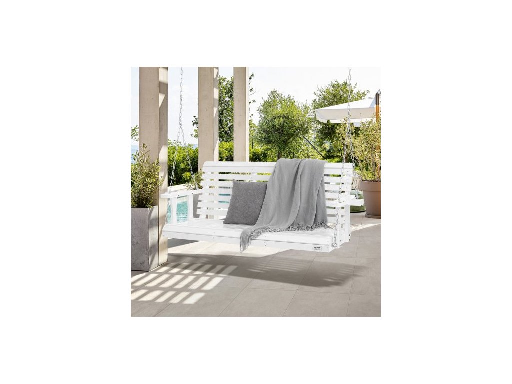 Barva: Bílá,Model: YQ-117D,Rozměry sedáku: 1397x483x584 mm,Rozměry řetězu: (Nad hákem S: 1,7 m); (Dole: 2,8' x 2 / 0,85 m x 2), Čistá hmotnost: 37,5 lbs / 17 kg, Hlavní materiál: Cedrové dřevo + ocelové řetězy, Celkové rozměry výrobku: 67x28x23,6'' / 1702x710x600 mm