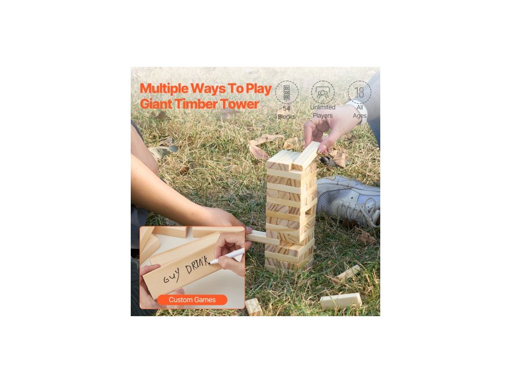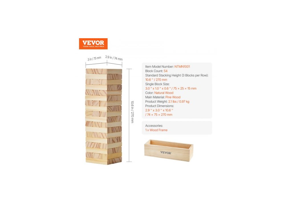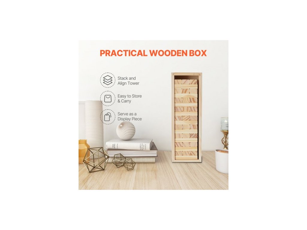 Dřevěná hračka Tumbling Tower, 54 kostek, hra Tumbling Tower, borovicová hra s úložnou bednou, dřevěná hra skládací věží pro 1 nebo více hráčů, rodinná hra Tumble Tower pro vnitřní i venkovní použitíVšestranná herní sada