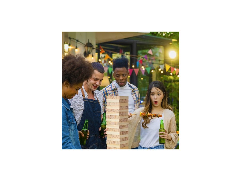 Dřevěná hračka Tumbling Tower, 54 bloků, hra Tumbling Tower, borovicová hra s úložnou bednou, dřevěná hra skládací pro 1 nebo více hráčů, rodinná hra Tumbling Tower pro vnitřní i venkovní použití