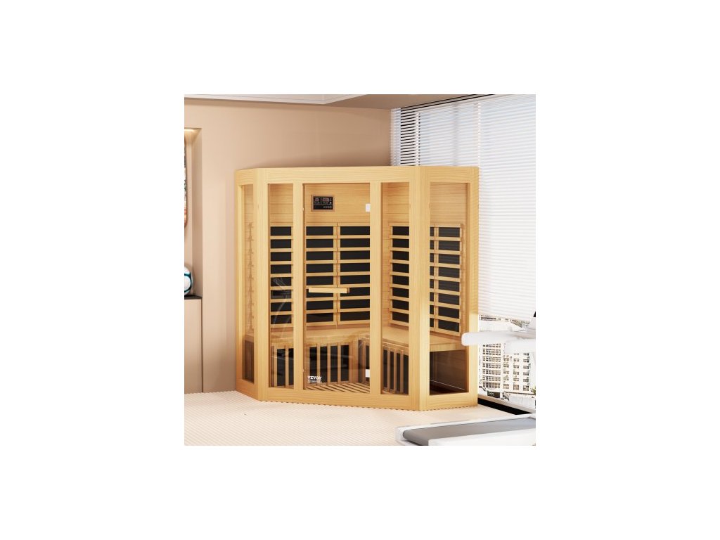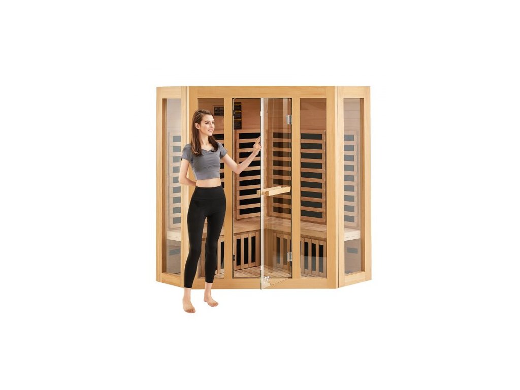 Dřevěná sauna s infračerveným zářením, pokojová domácí sauna pro 3 až 4 osoby, nízkoelektromagnetická infračervená sauna z jedlovce s tvrzenými skleněnými dveřmi, Bluetooth reproduktory a chromoterapeutickými světly, vnitřní výkon 2470 W