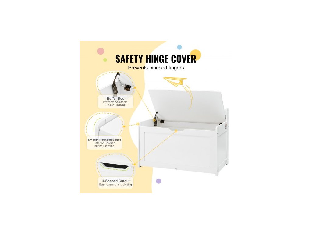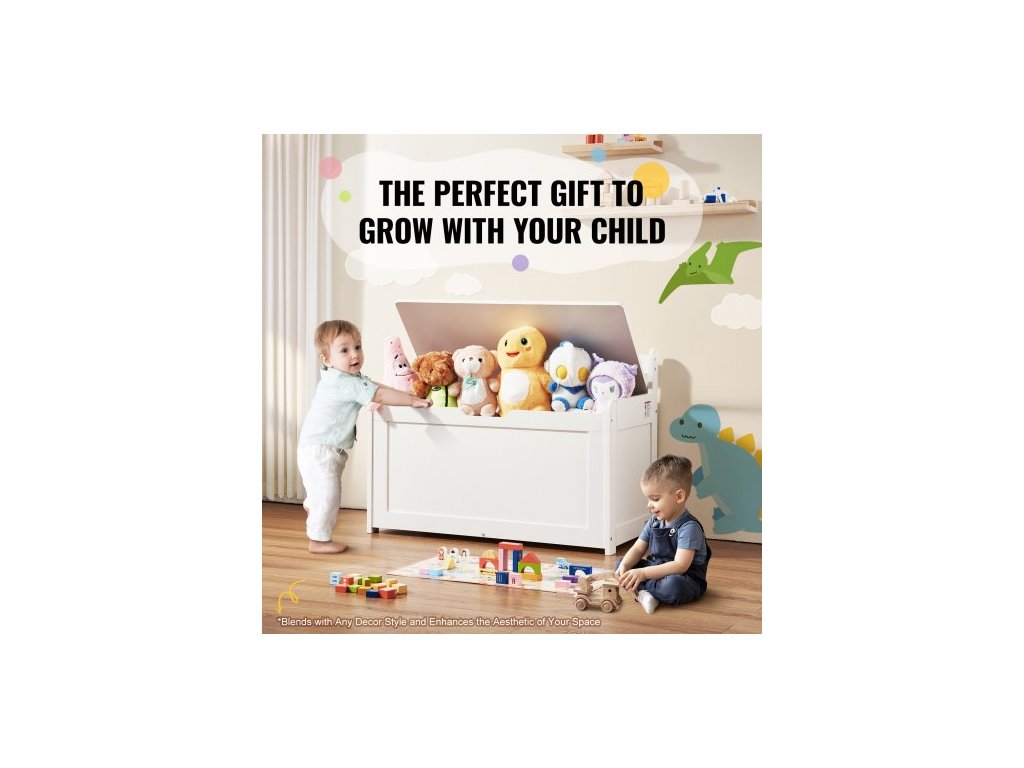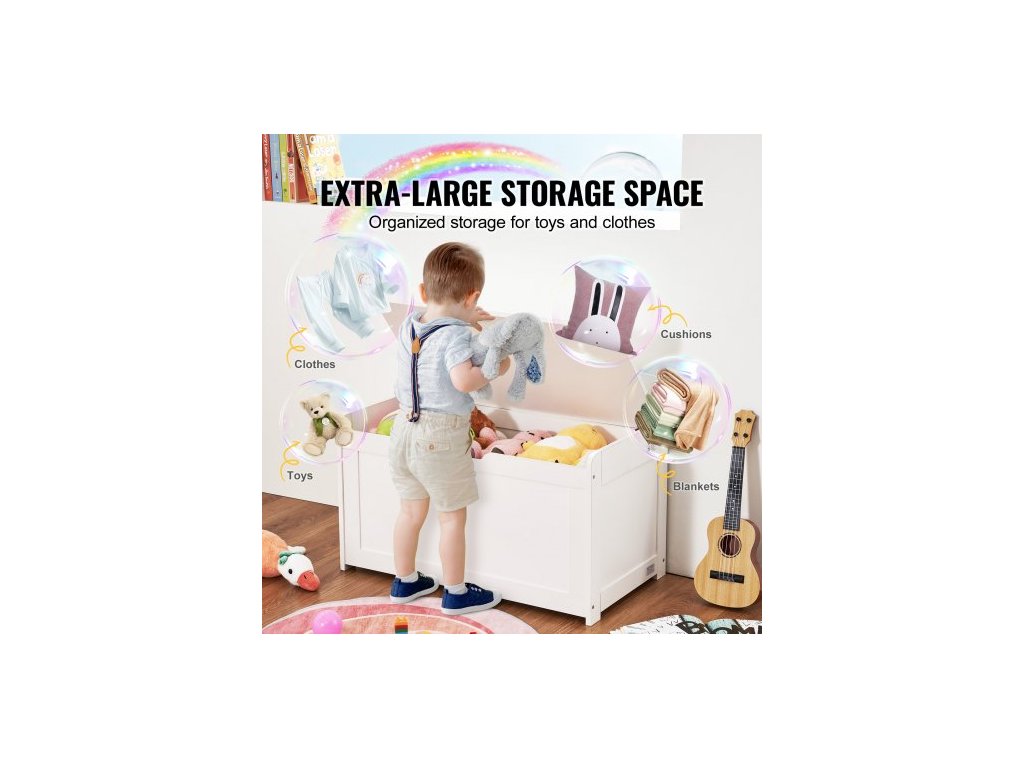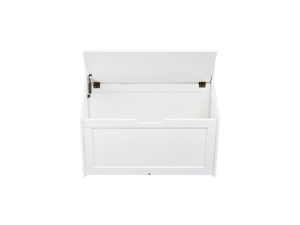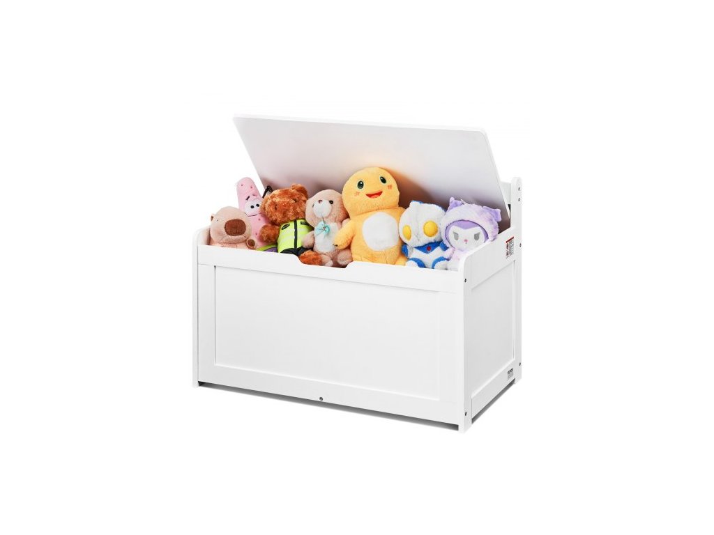Dřevěná truhla na hračky pro děti, úložný box na hračky pro batolata s odklápěcím víkem a bezpečnostním pantem, velká dětská úložná lavice do herny, ložnice, obývacího pokoje nebo předsíně, bílá