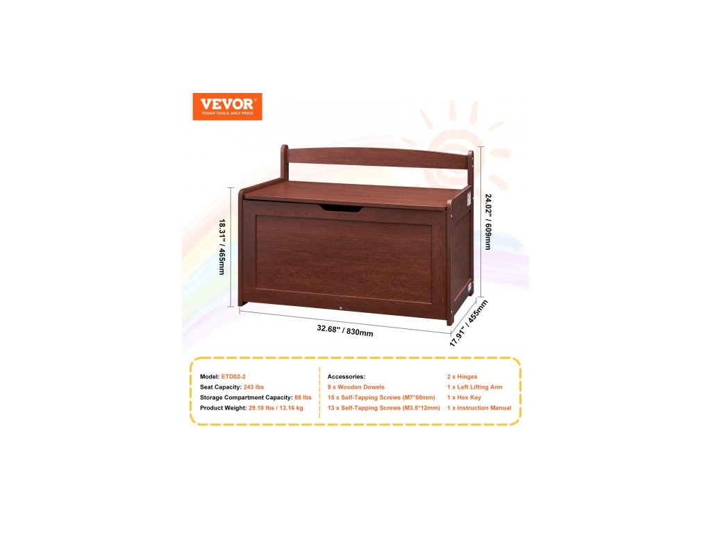 Kapacita úložného prostoru: 38 kg,Model: ETD02-2,Kapacita sedáku: 113 kg,Hmotnost výrobku: 13,16 kg,Rozměry výrobku: 830 x 455 x 609 mm