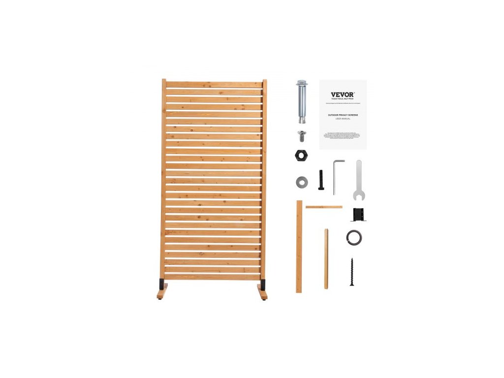 Dřevěná zástěna , venkovní zástěna na ochranu soukromí, 91 cm Š x 187 cm V, volně stojící dřevěný panel na ochranu soukromí se stojanem, dekorativní zástěna na terasu, venkovní dělicí stěna pro balkon, terasu, trávník, zahraduNatíratelné