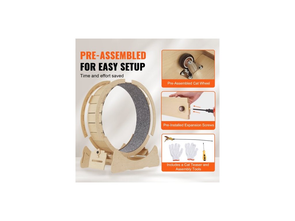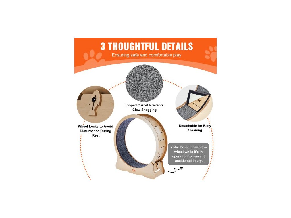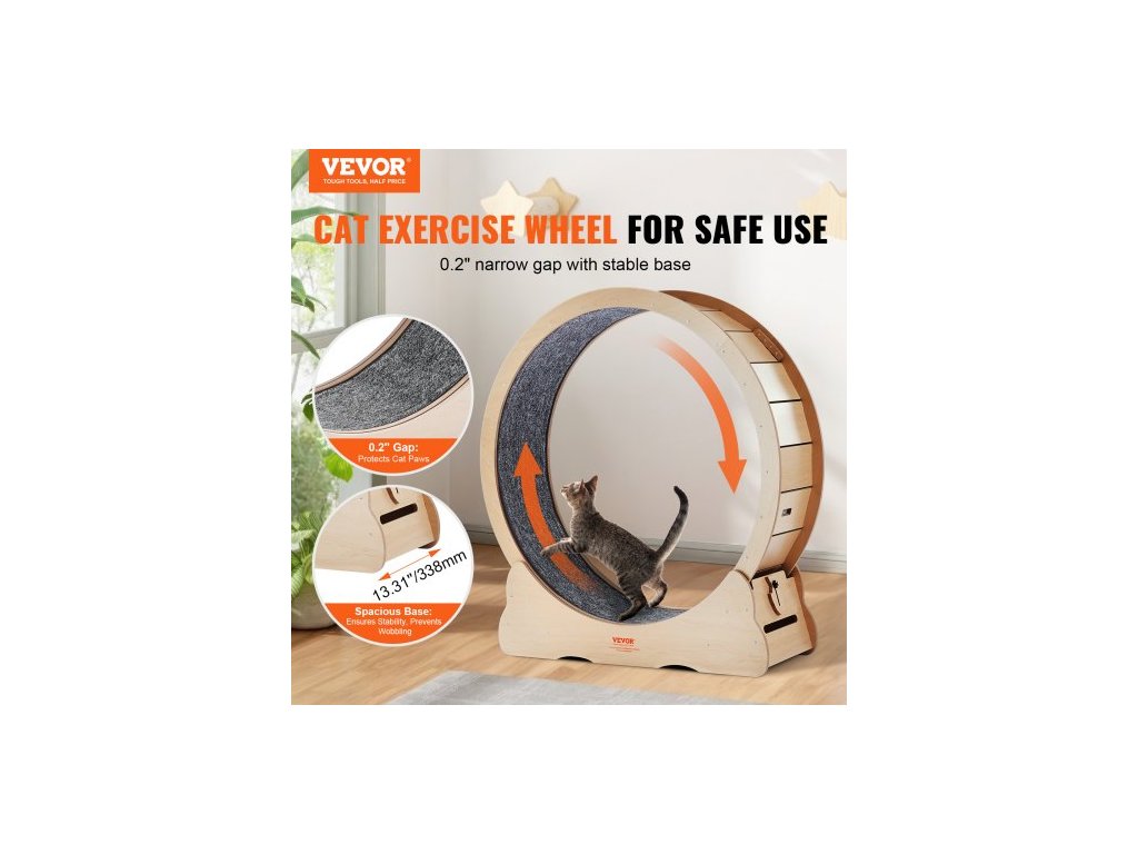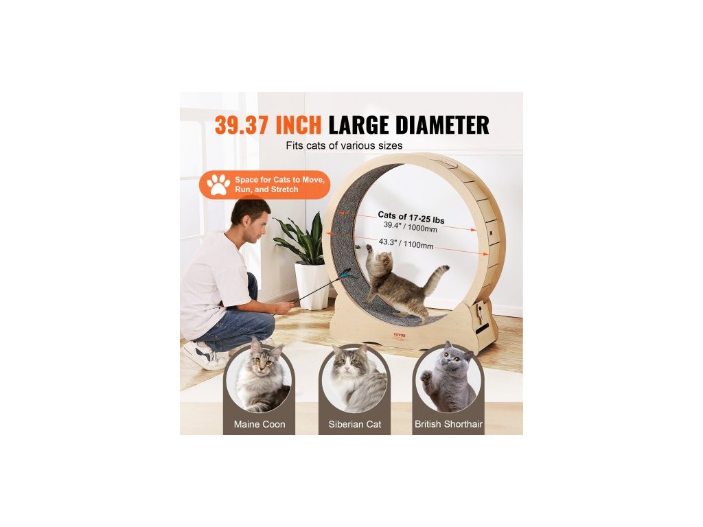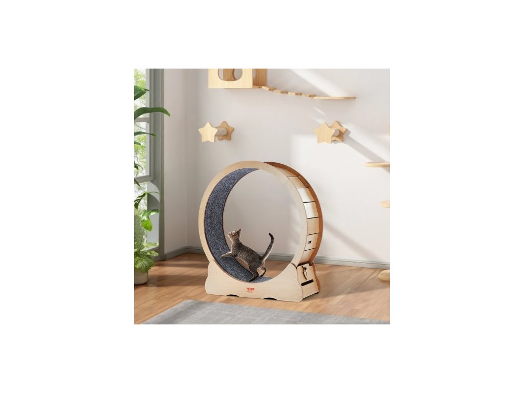Dřevěné cvičební kolo pro kočky , velké běžecké kolo pro kočky o průměru 43,3" pro vnitřní kočky, běžecké kolo pro kočky s odnímatelným kobercem a kočičím hádankou pro běh/chůzi/trénink, vhodné pro většinu koček, žlutéTiché a hlučné