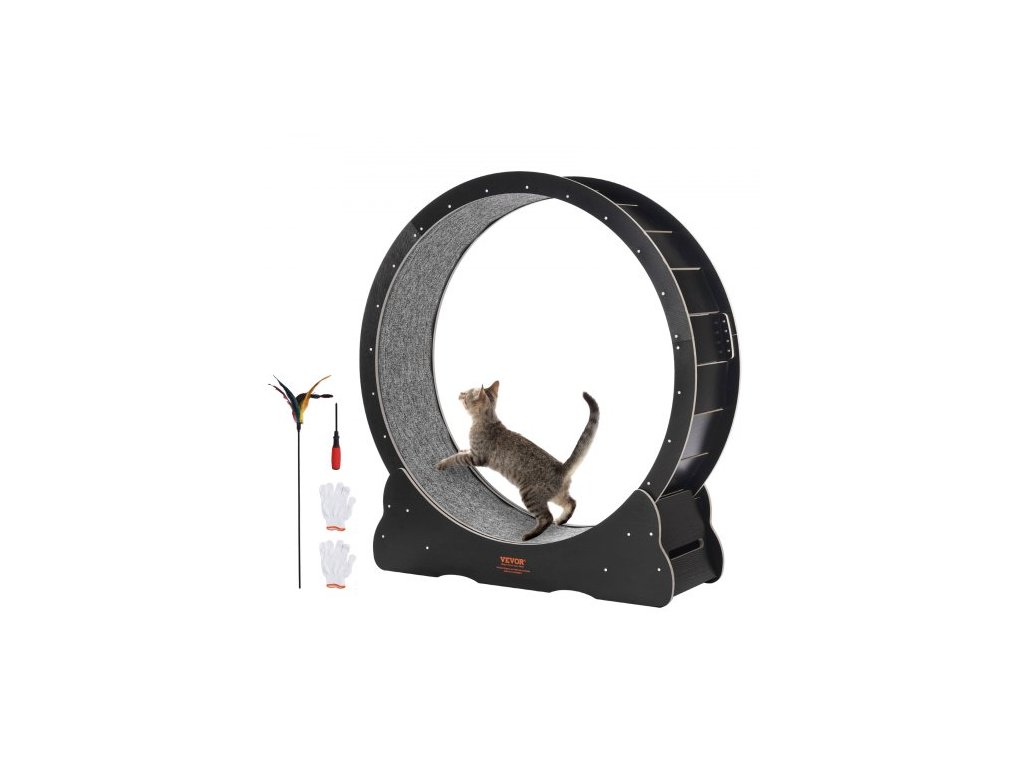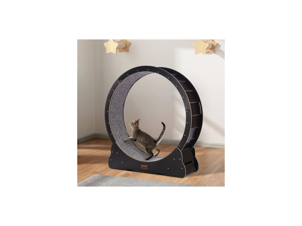 Dřevěné cvičební kolo pro kočky, velké běžecké kolo pro kočky o průměru 43,3" pro vnitřní kočky, běžecké kolo pro kočky s odnímatelným kobercem a kočičím hádankou pro běh/chůzi/trénink, vhodné pro většinu kočekTiché a hlučné