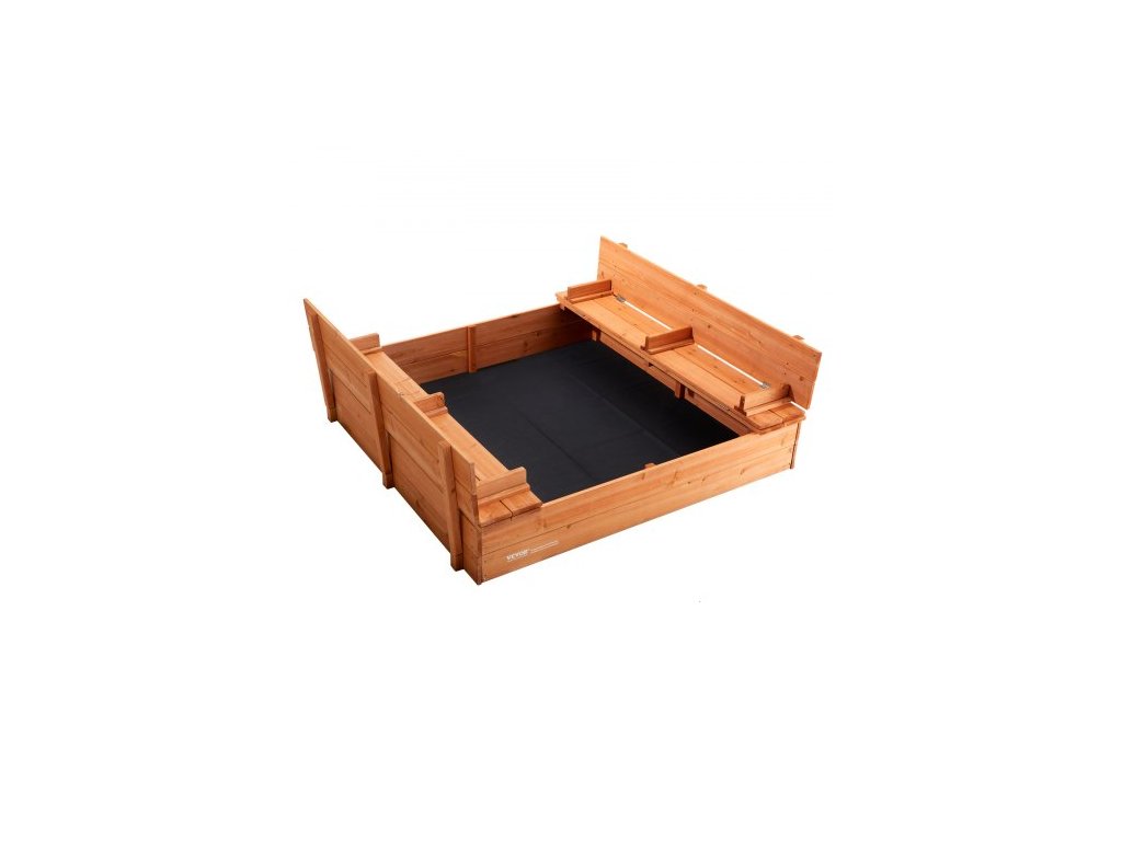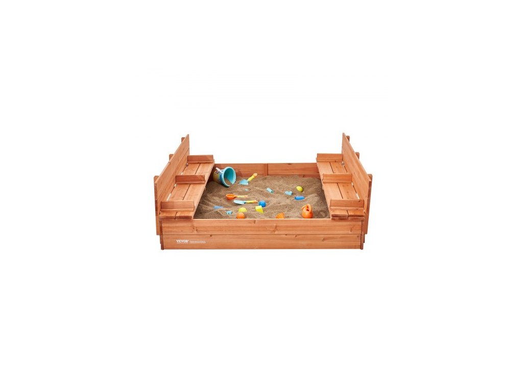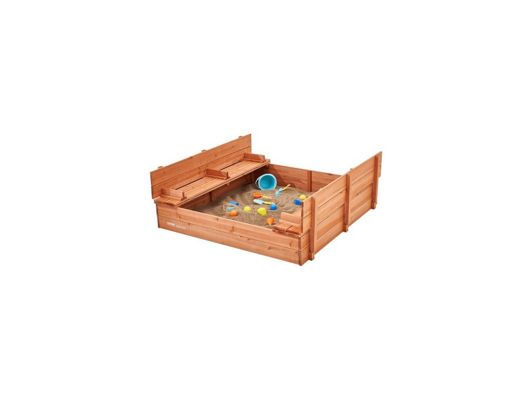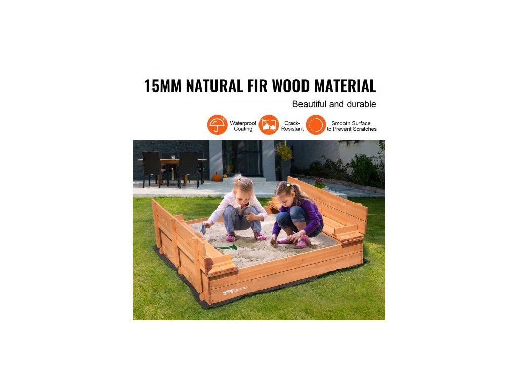 Dřevěné pískoviště , 52,4 x 47,2 x 16,9 palce, pískoviště se skládacími lavicemi a spodní vložkou, dětské pískoviště z přírodního dřeva pro venkovní použití na zahradu, pláž, park, dárek pro chlapce a dívky ve věku 3-12 let