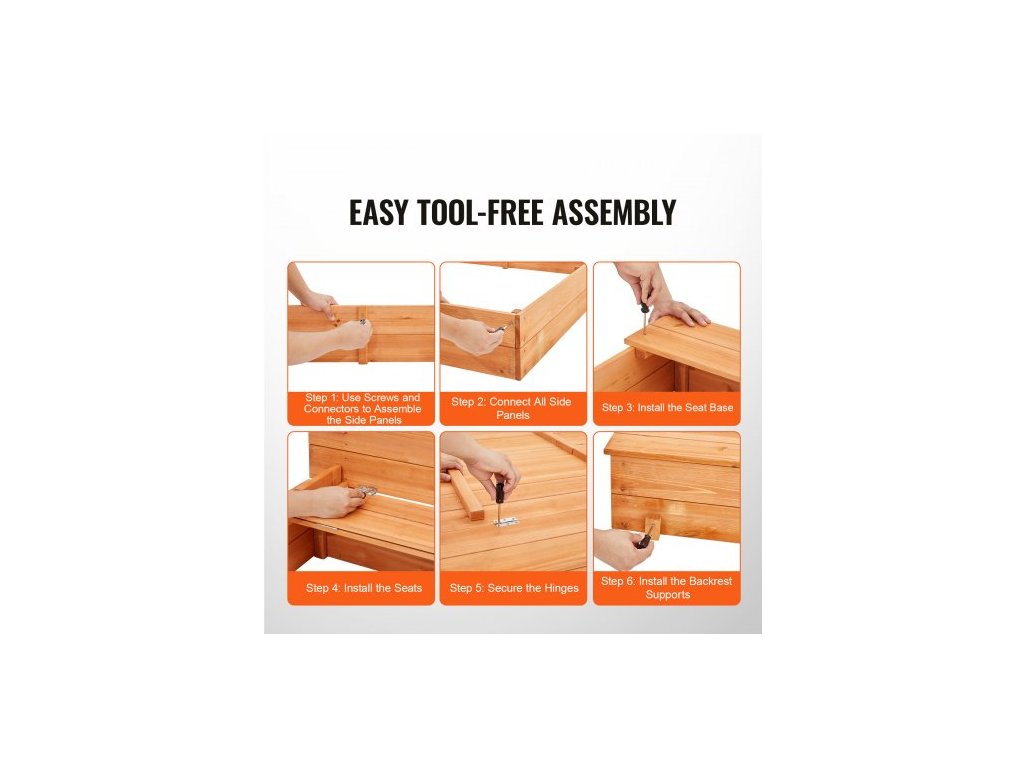 Čistá hmotnost (včetně veškerého příslušenství): 34,2 lbs / 15,5 kg,Maximální nosnost na sedadlo: 175 lbs / 80 kg,Číslo modelu položky: WSB-1200E,Materiál: 15mm silné jedlové dřevo,Rozměry výrobku: 52,4 x 47,2 x 16,9 palce / 1330 x 1200 x 430 mm,Vzhled: Čtvercový (bez stříšky)