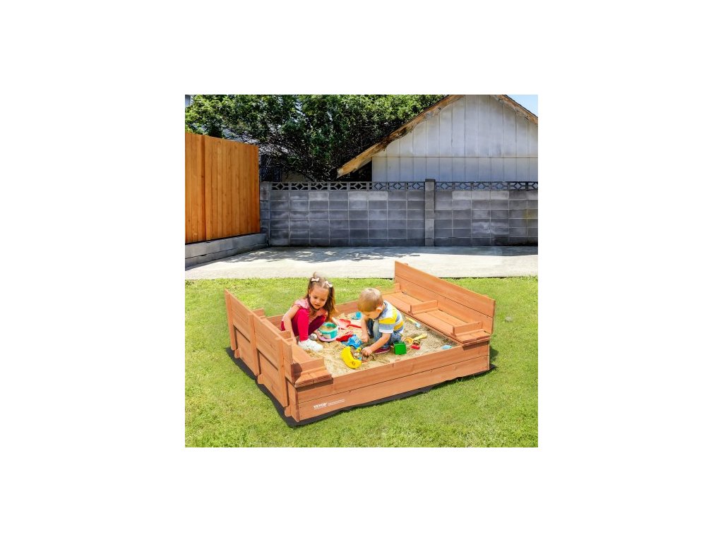 Dřevěné pískoviště , 52,4 x 47,2 x 16,9 palce, pískoviště se skládacími lavicemi a spodní vložkou, dětské pískoviště z přírodního dřeva pro venkovní zahradu, pláž, park, dárek pro chlapce a dívky ve věku 3-12 letProstorné hřiště