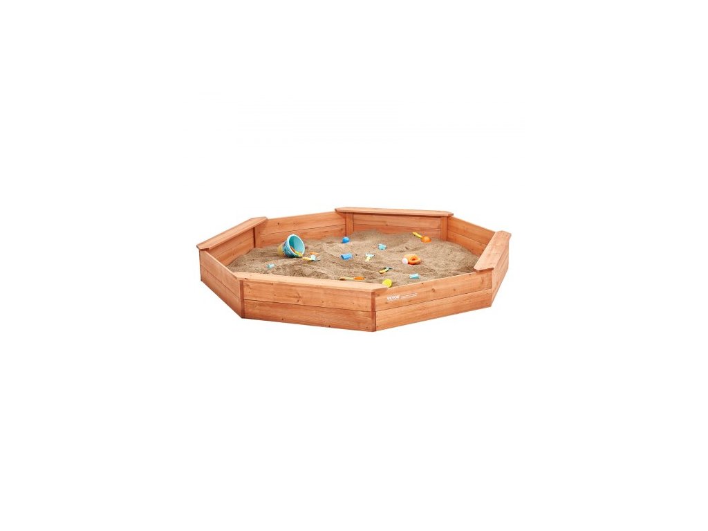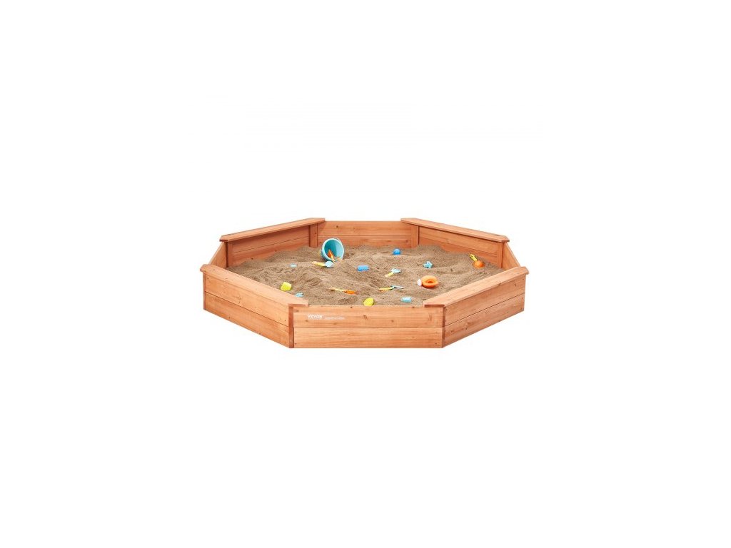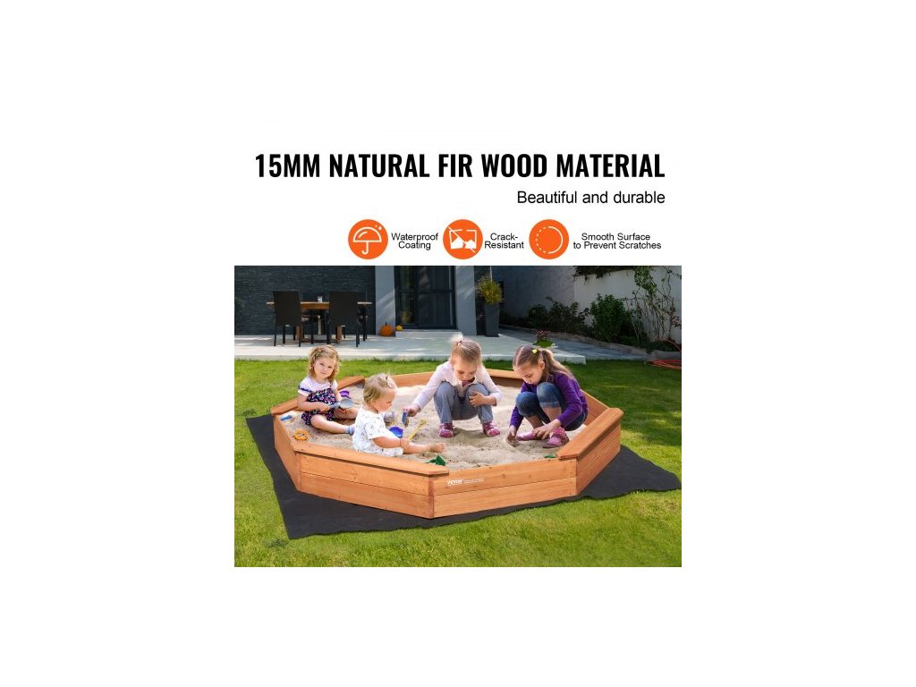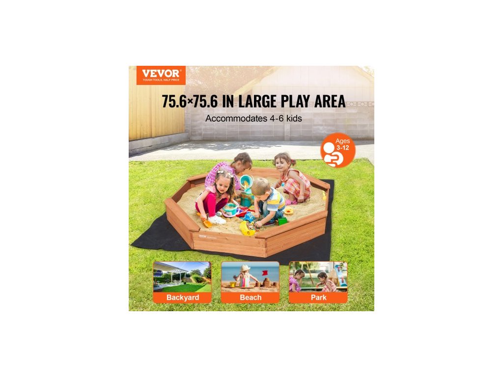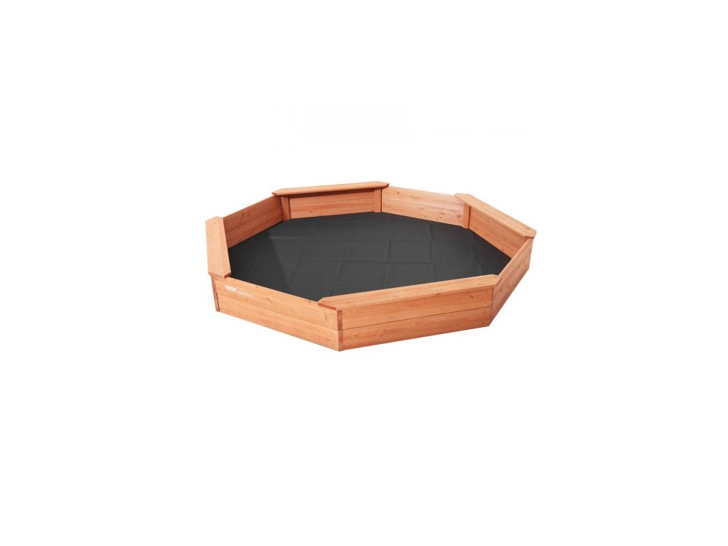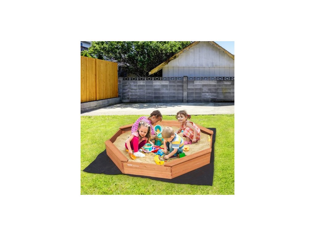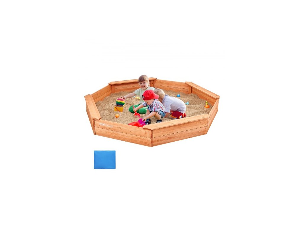 Dřevěné pískoviště s krytem, osmihranné pískoviště 75,6 x 75,6 x 9,1 palce, pískoviště se 4 místy k sezení a spodní vložkou, dětské pískoviště na venkovní zahradu, pláž, park, dárek pro chlapce a dívky ve věku 3-12 letProstorné hřiště