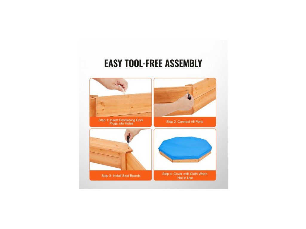 Dřevěné pískoviště s krytem, 75,6 x 75,6 x 9,1 palce, osmihranné pískoviště, pískoviště se 4 místy k sezení a spodní vložkou, dětské pískoviště na venkovní zahradu, pláž, park, dárek pro chlapce a dívky ve věku 3-12 let.