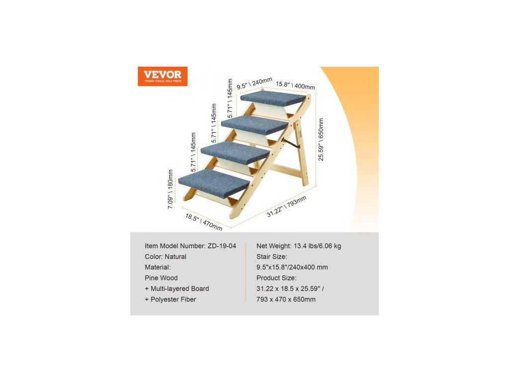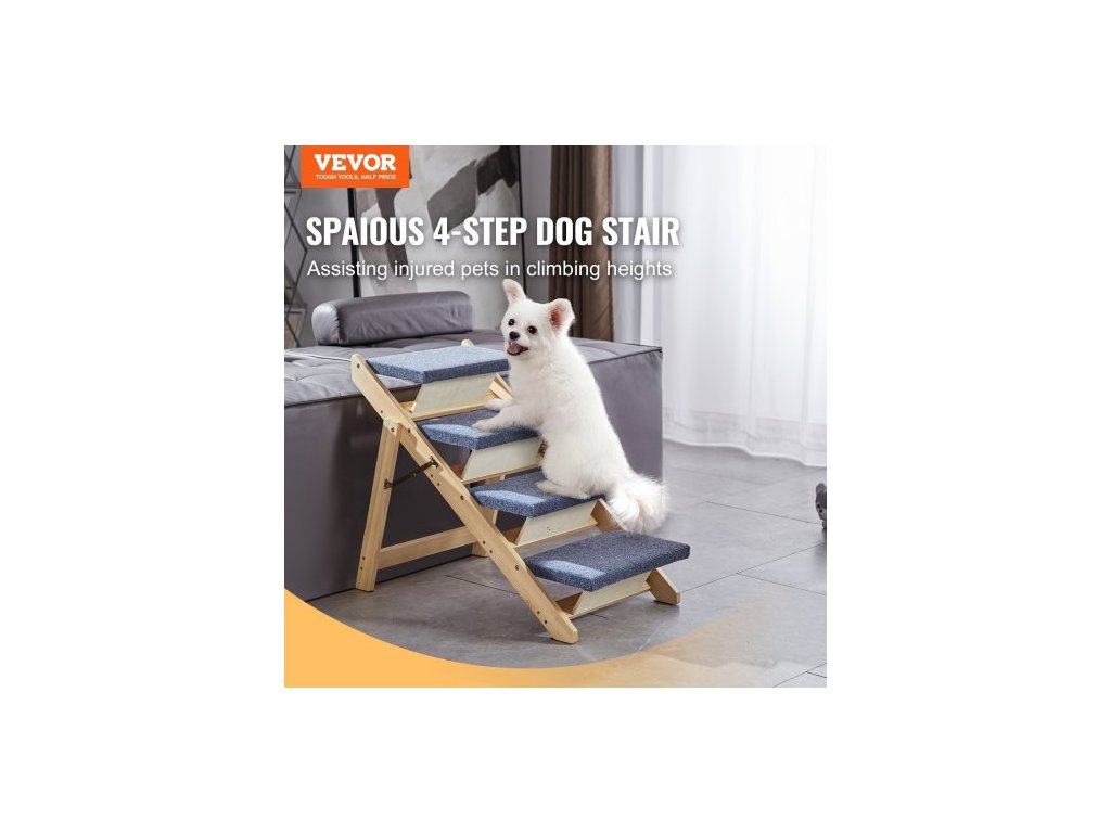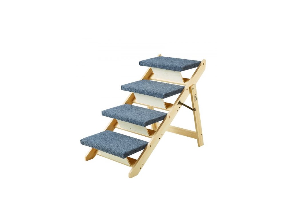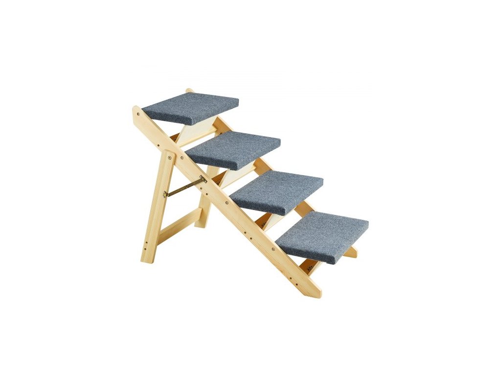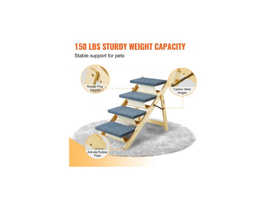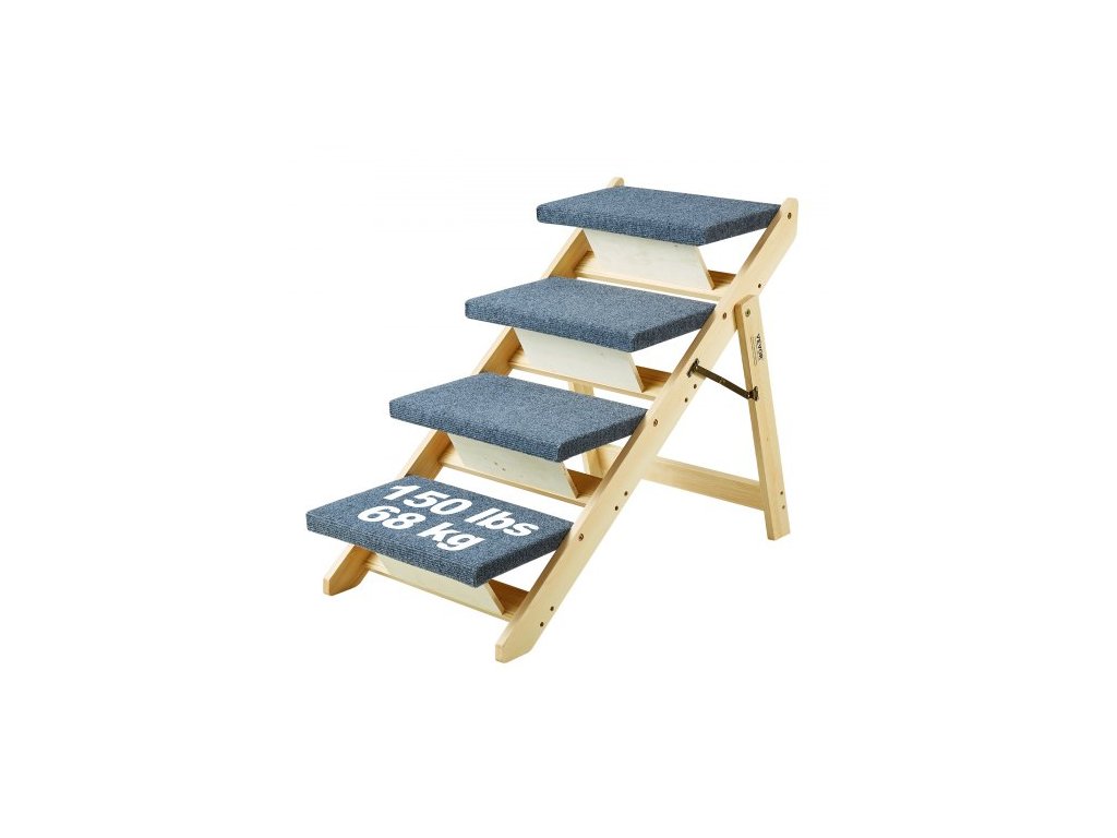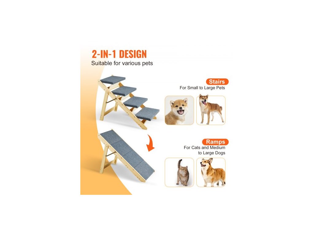 Dřevěné schody pro domácí mazlíčky/šchůdky pro domácí mazlíčky, 2 v 1 skládací dřevěné schody pro psy do pelíšků, pohovek a aut, schody a rampa pro psy se 4 schody pro malé, střední a velké domácí mazlíčky, do 70 kg