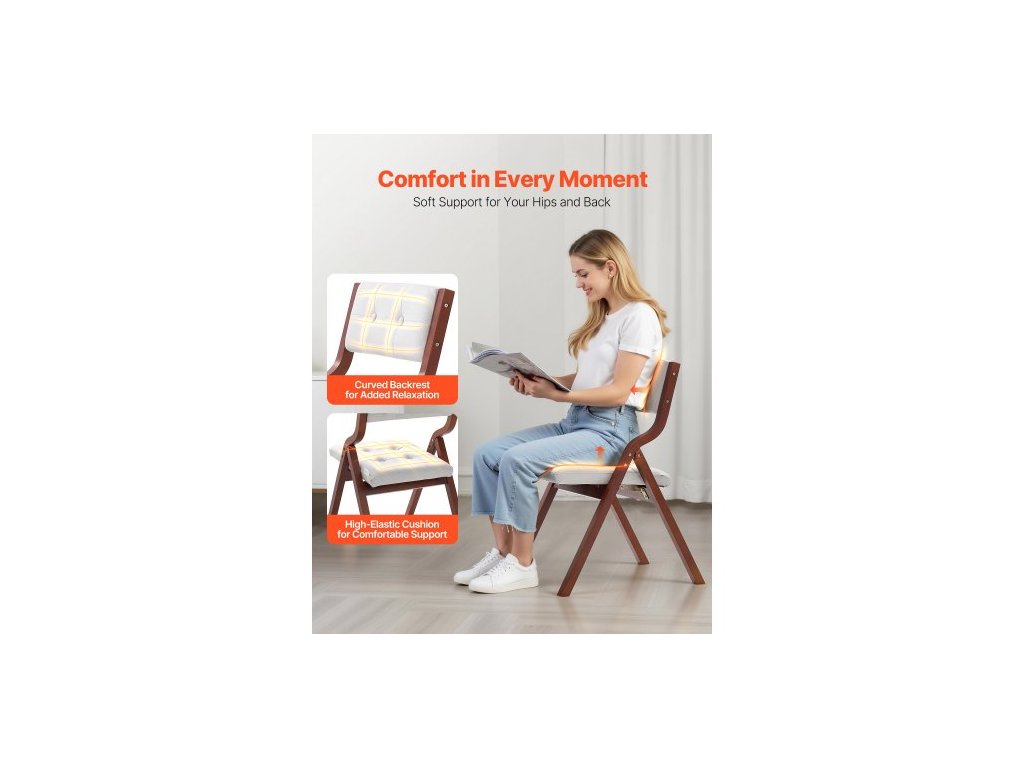Skládací dřevěné židle s polštářem, sada 2 kusů, přenosná skládací polštářová židle s dřevěným rámem, moderní polstrovaná jídelní židle do kuchyně, kanceláře, na svatbu, večírek, do jídelny, snadná montáž, bíláMasivní dřevěný rám