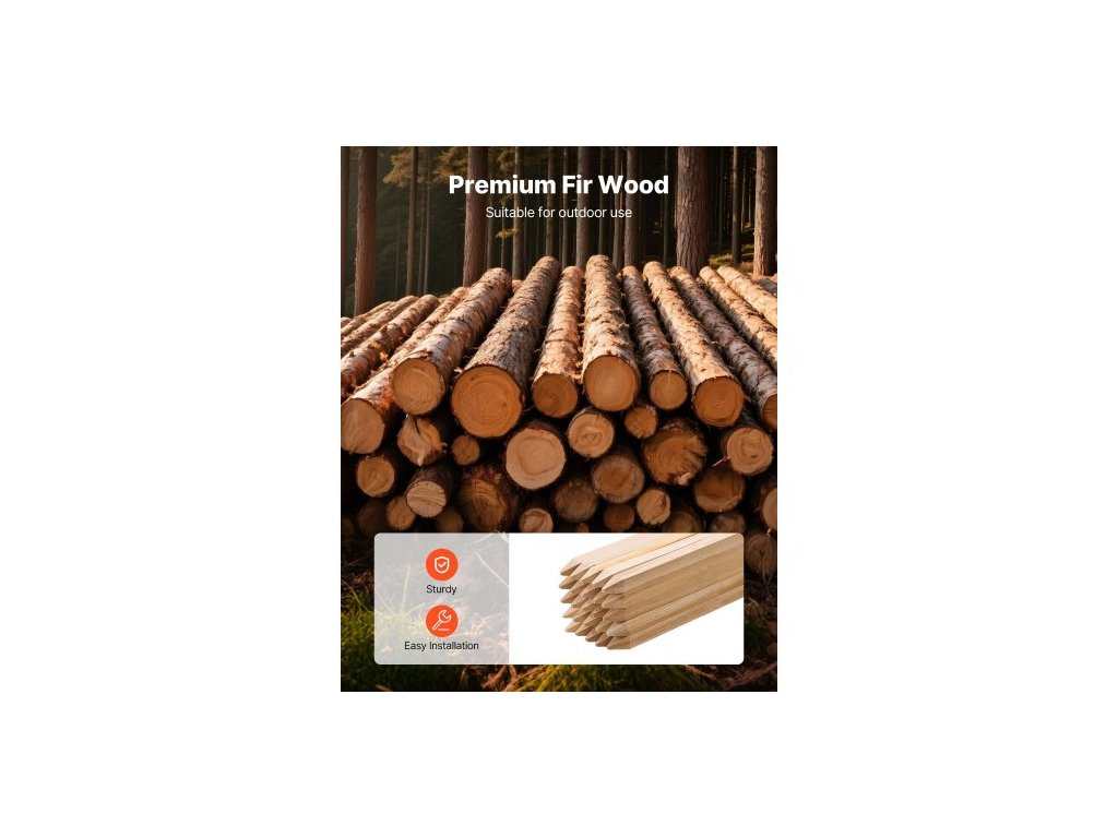 Dřevěné zahradní kolíky , 25 ks 19,05 × 19,05 × 1219,2 mm, kolíky pro vytyčování terénu, zahradní zemní kolík s ostrým hrotem, podpěrný kolík z jedlového dřeva pro rostliny, sloupky pro značení pro vytyčení hranic pozemku z bahna