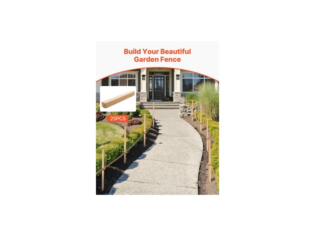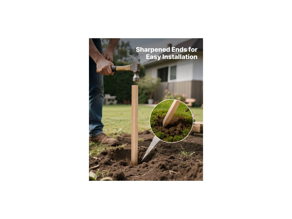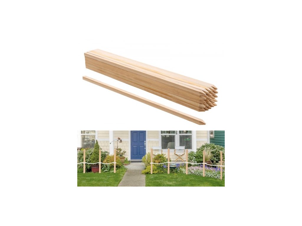 Dřevěné zahradní kůly, 25 ks 19,05 × 19,05 × 914,4 mm Kolíky pro vytyčování terénu, zahradní zemní kůl s ostrým hrotem, podpěrný kůl pro rostliny z jedlového dřeva, sloupky pro značení pro plot z bahna, hranice dvorku, základní linieStylový a praktický zahradní plot