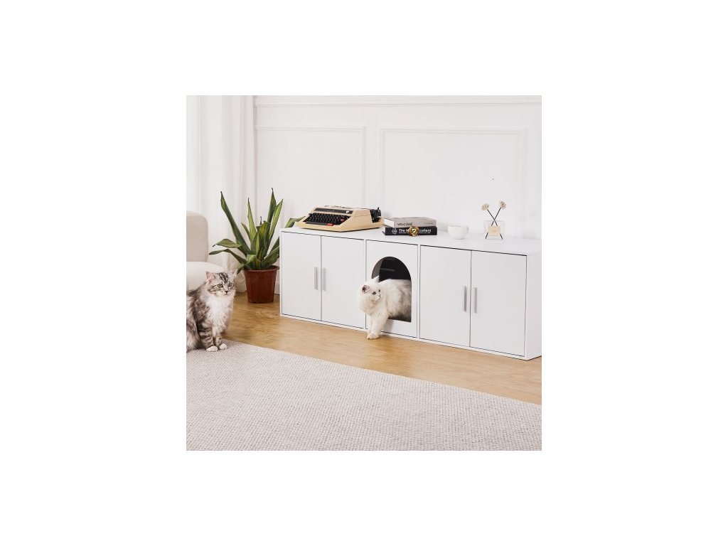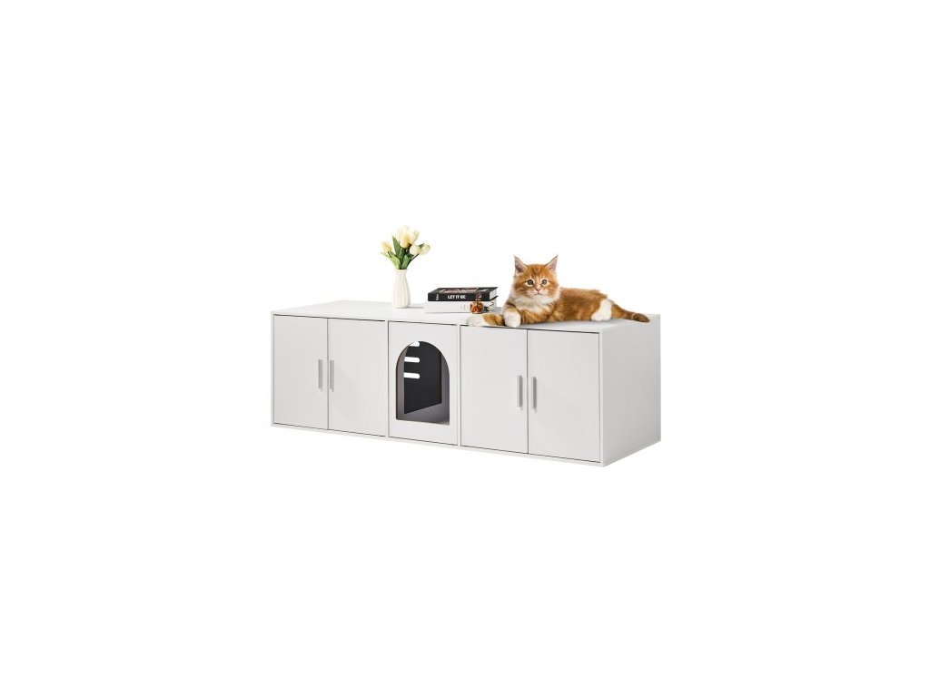 Dřevěná skříňka na kočičí toaletu, skrytá, 147,1 cm, bíláZkrášlete si domov