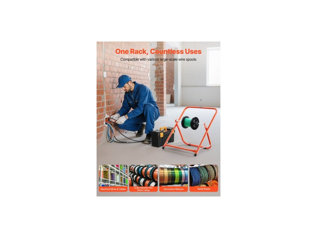 Držák kabelů , odolný ocelový rám, držák cívek pro elektrické vodiče, přenosný dávkovač drátu pro cívky o průměru až 508 mm / 20 palců, nosnost 45 kg / 100 liber pro kabelové bubny, maloobchod s elektrotechnikou a průmyslovými výrobkySkládací a přenosná konstrukce