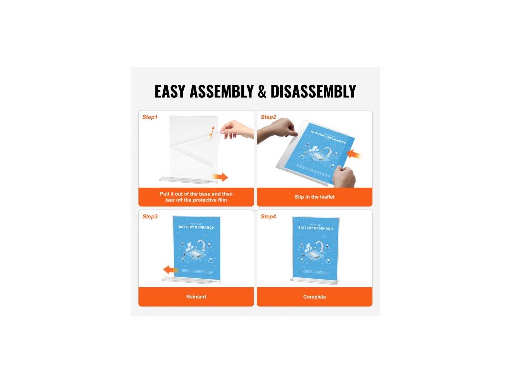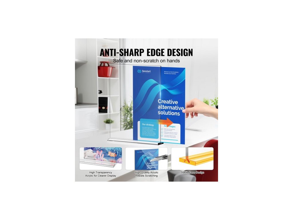 Držák na cedule z akrylu, balení 6 držáků na brožury 8,5 x 11 palců, oboustranný stojan na cedule ve tvaru T, průhledný akrylový držák na fotografický papír na menu pro restauraci, kancelář, svatební barVysokokapacitní úložný prostor